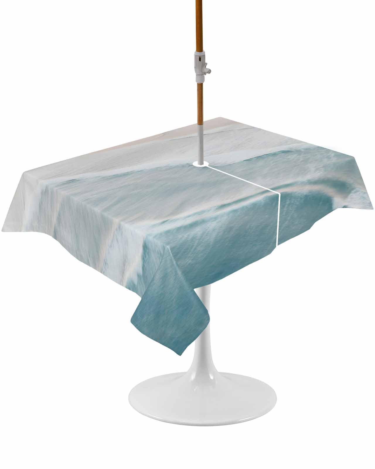 Summer Beach Outdoor Tablecloth - 54x54 Inch Square Dining Table Cover, Coastal Ocean Nautical Seaside Aqua Beige Waterproof Outdoor Table Cloth with|Kitchen & Dining