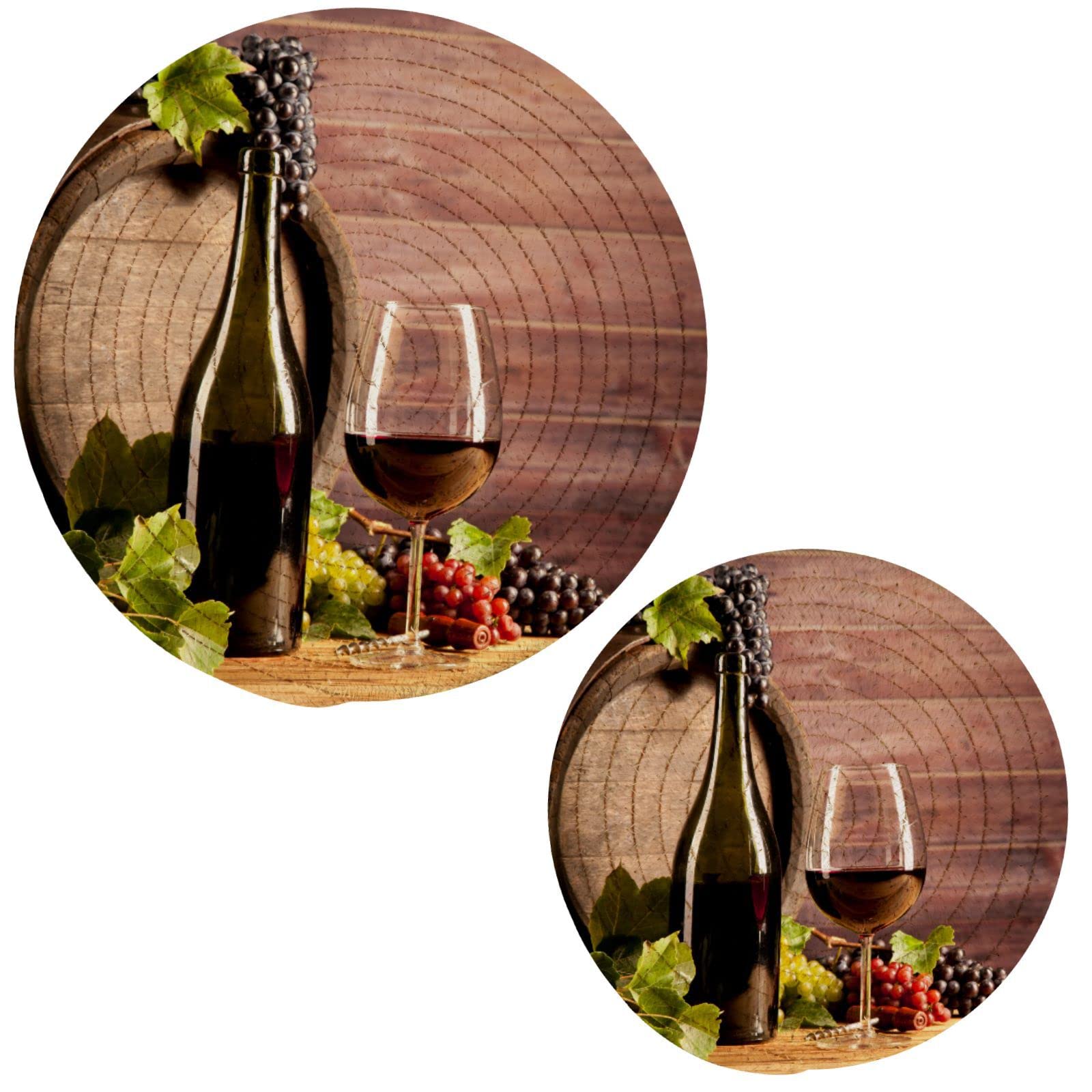 Naanle 2Pcs Winery Grape Wine and Glass Round Woven Pot Holders Trivets Set, Cotton Coasters Placemats for Cooking Baking Hot Dish Pan Pot Bowl Teapot|Kitchen & Dining