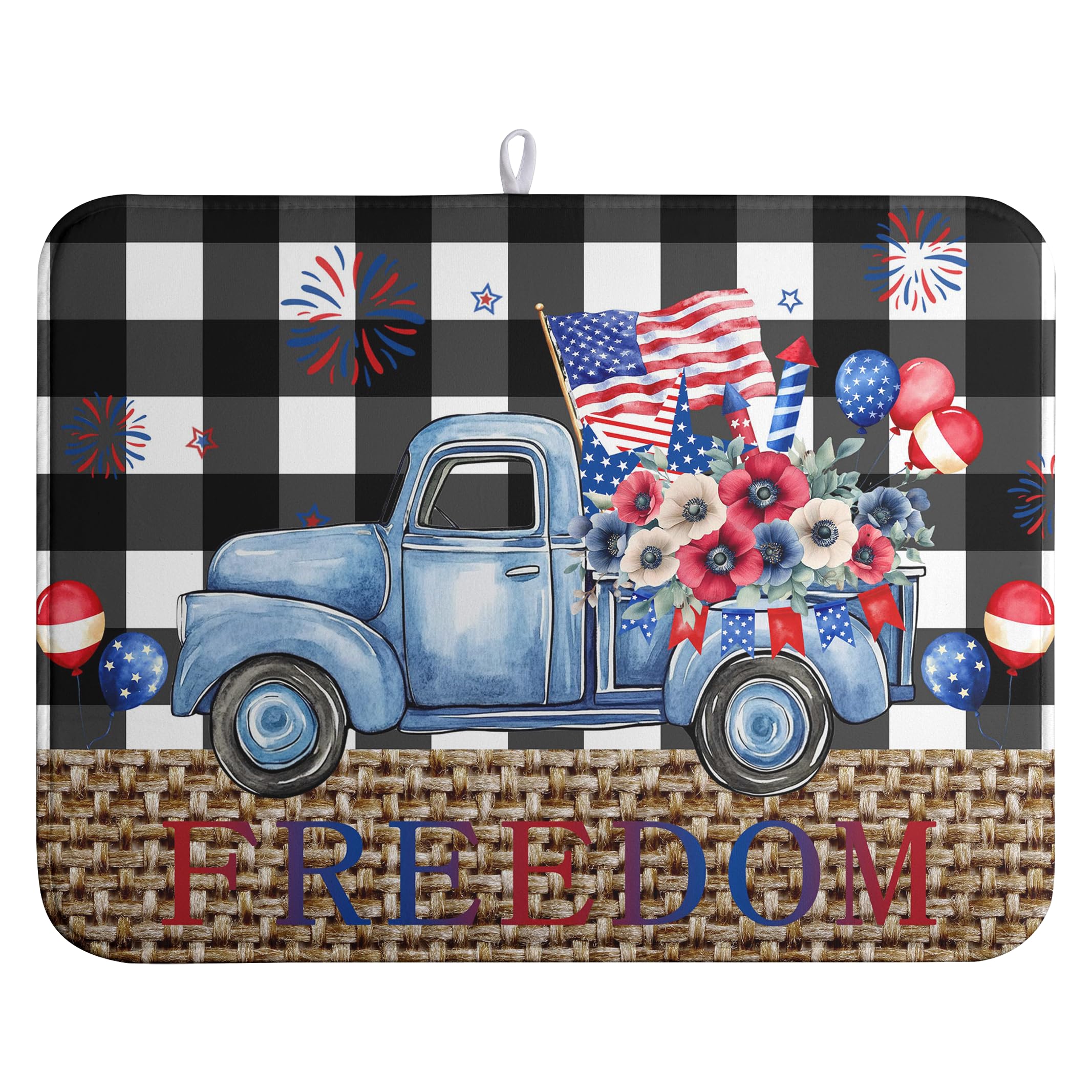 4th of July Buffalo Plaid Dish Drying Mat Patriotic Large Kitchen Mat Dish Drying Pad Absorbent Dish Dryer Mat for Kitchen Countertops Microfiber|Kitchen & Dining