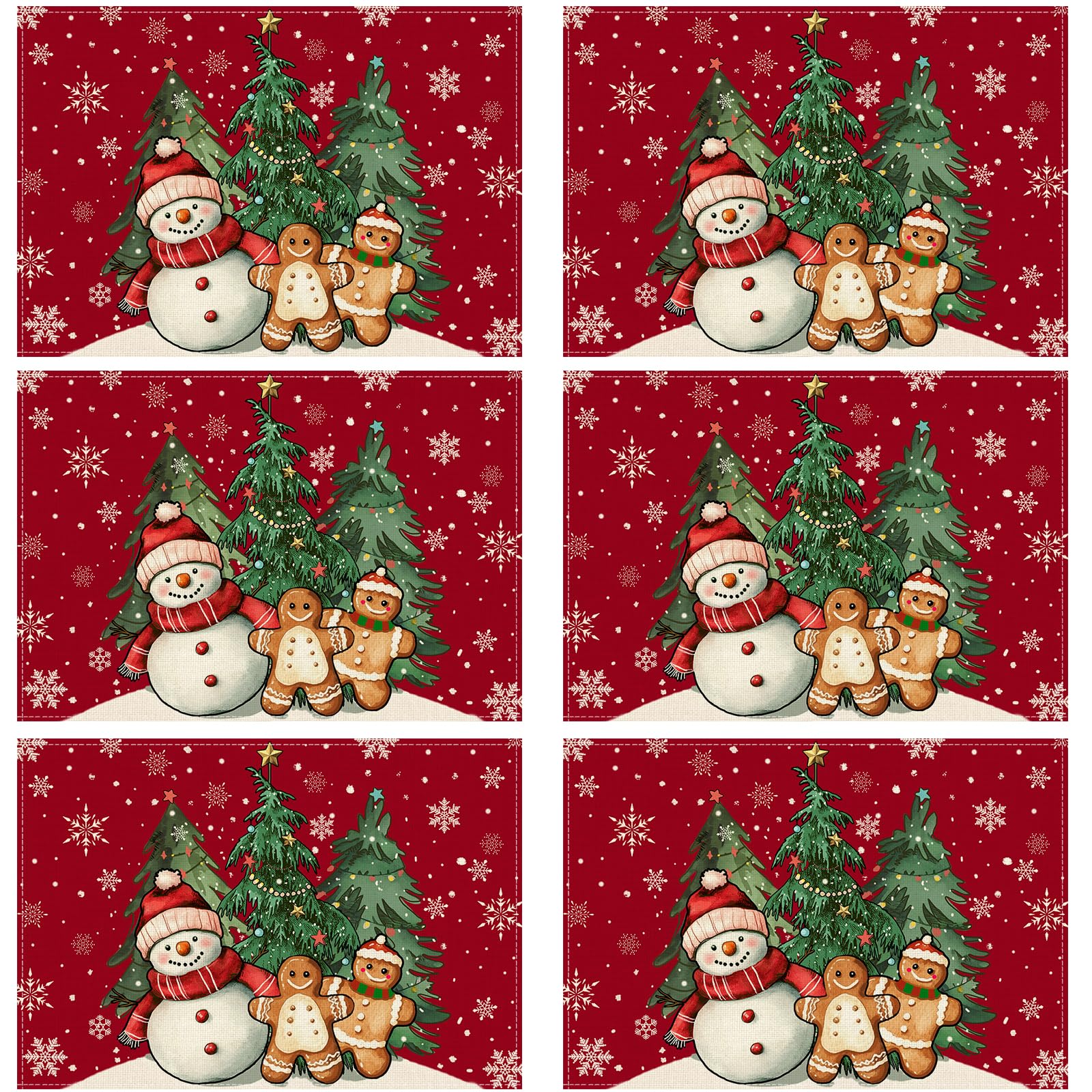 XCHI Winter Red Snowman Gingerbread Man Christmas Tree Xmas Placemats Set of 6 Table Mats for Party Home Kitchen Dining Table Decorations 12x18 Inch|Kitchen & Dining