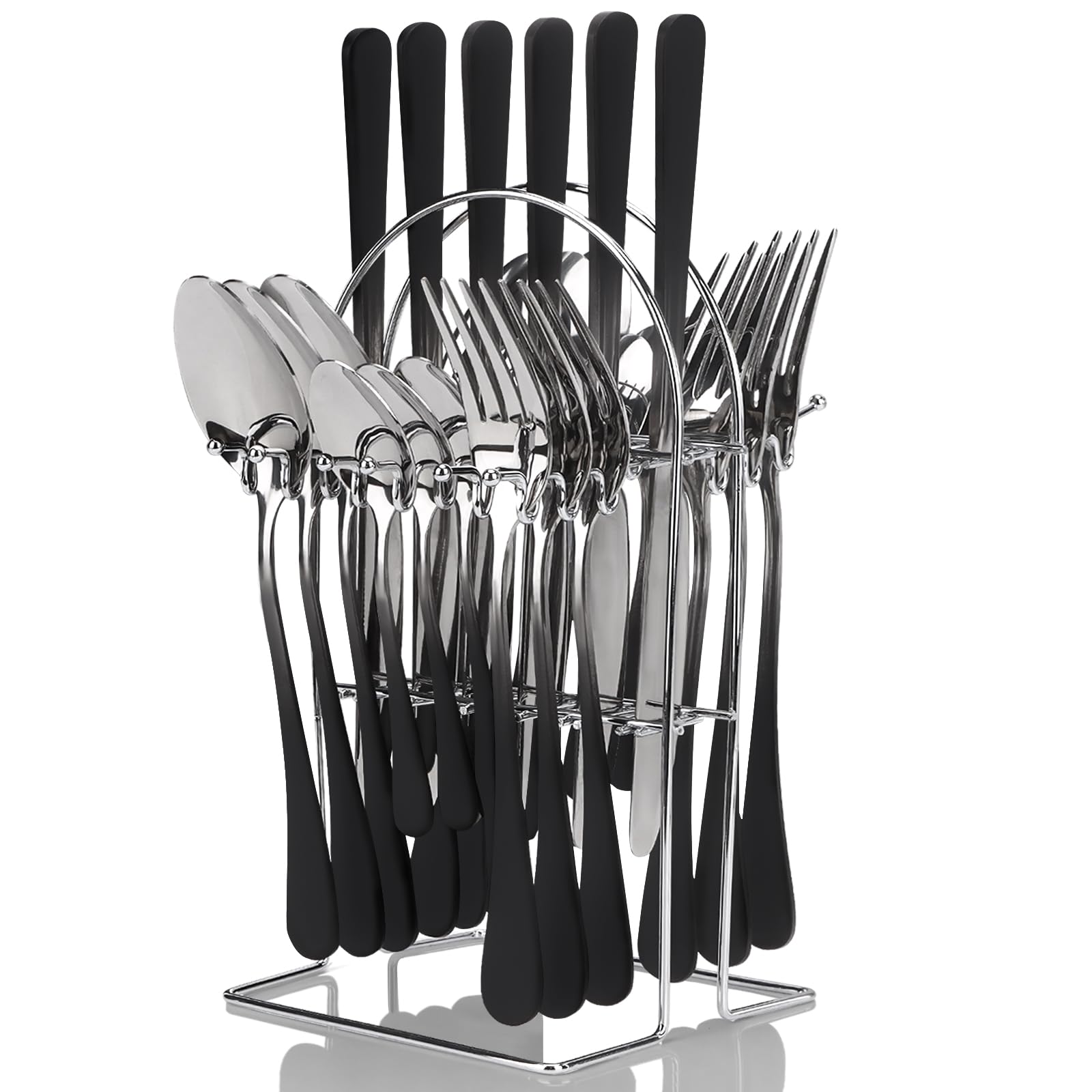 RETON 24 Piece Gold Silverware Set, Stainless Steel Flatware Set Include Knife Fork Spoon Set, Mirror Polished Cutlery Set Service for 6, Tableware|Kitchen & Dining