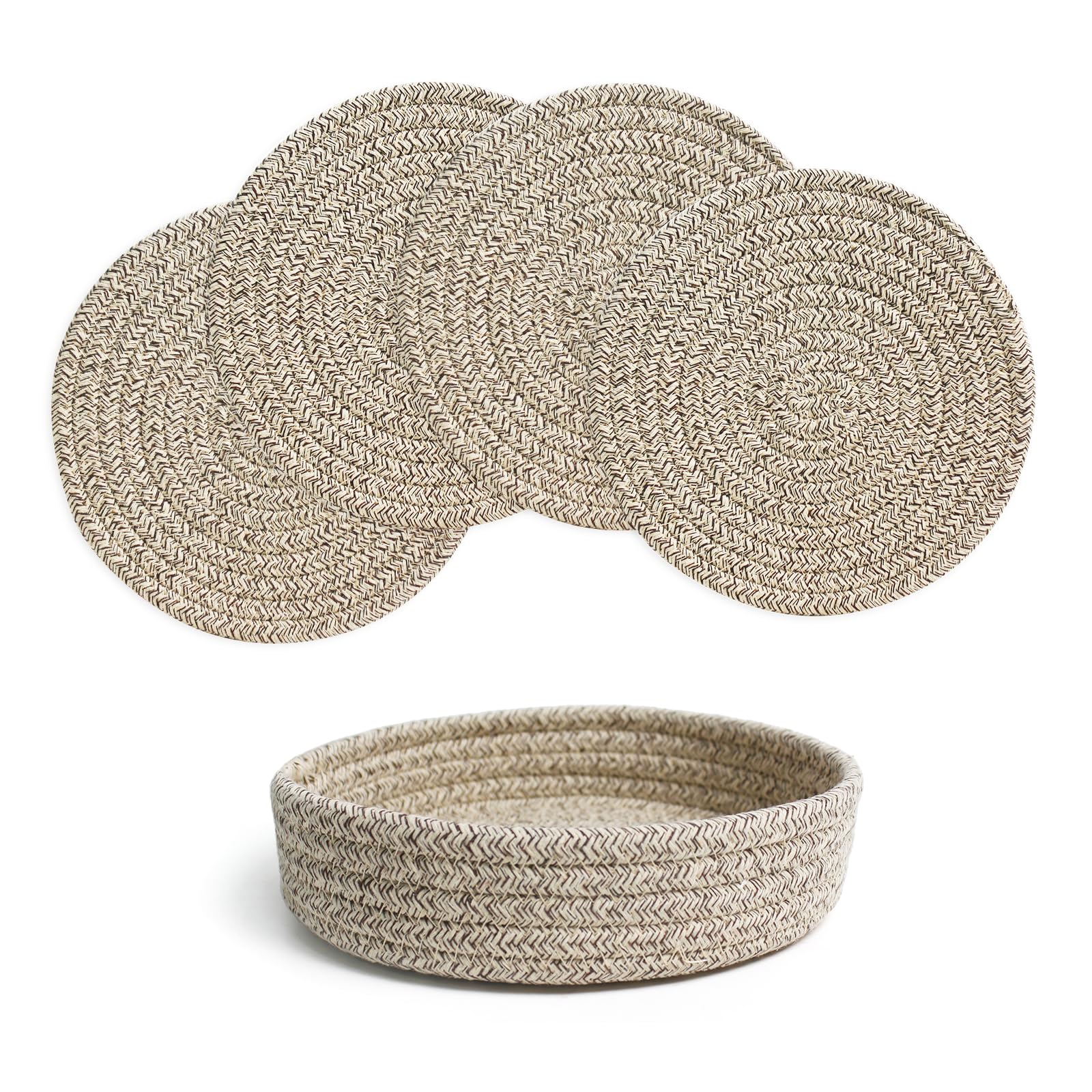 Coga Trivets for Hot Dishes, Trivets for Hot Pots and Pans, 7 Inchs Hot Pads 5 Pcs and Storage Basket for Countertops, Pot Holders for Kitchen, Cotton|Kitchen & Dining