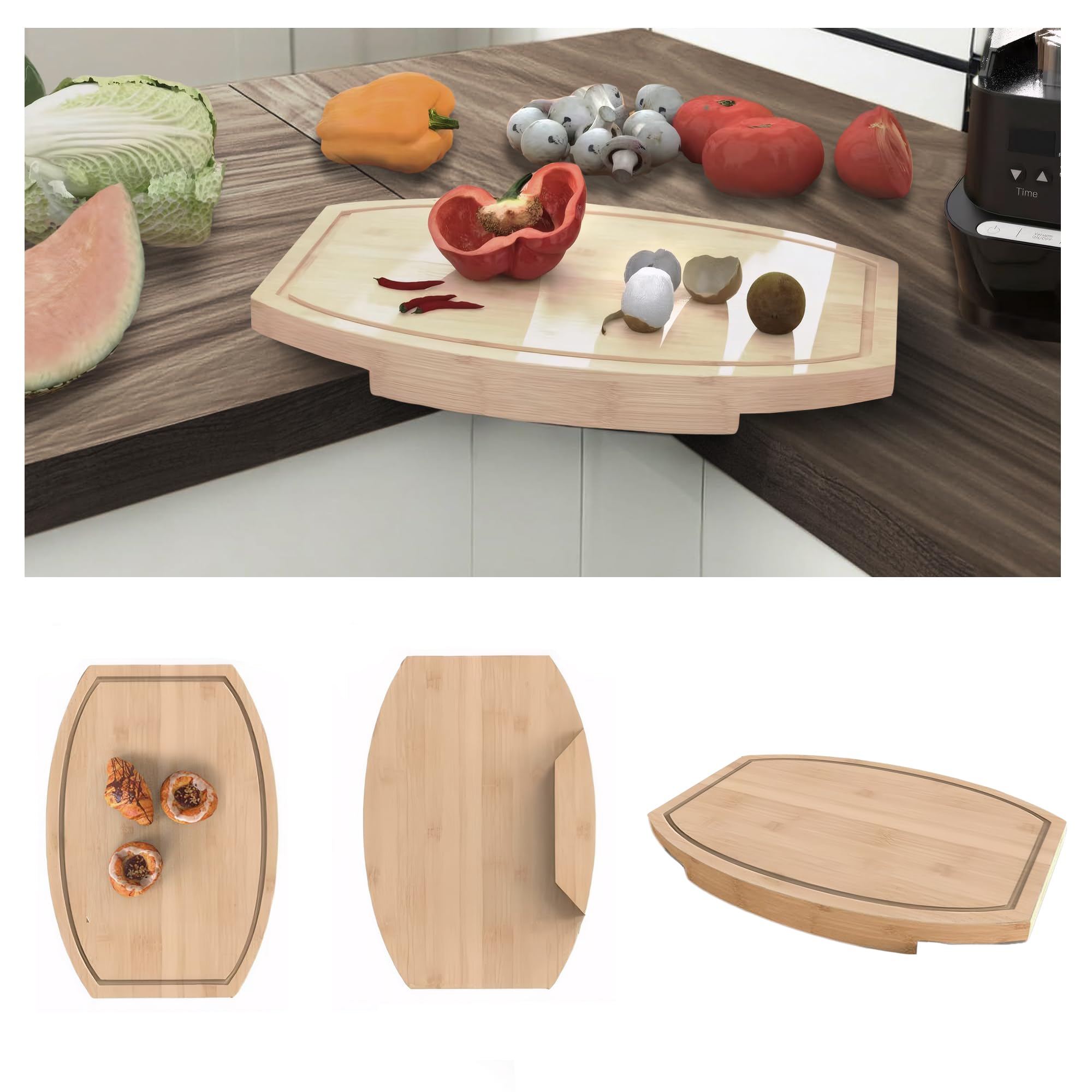 ZYWEICH Kitchen counter Bamboo Wood Corner Cutting Board, Space Saving Countertop Chopping Board with Juice Groove|Kitchen & Dining