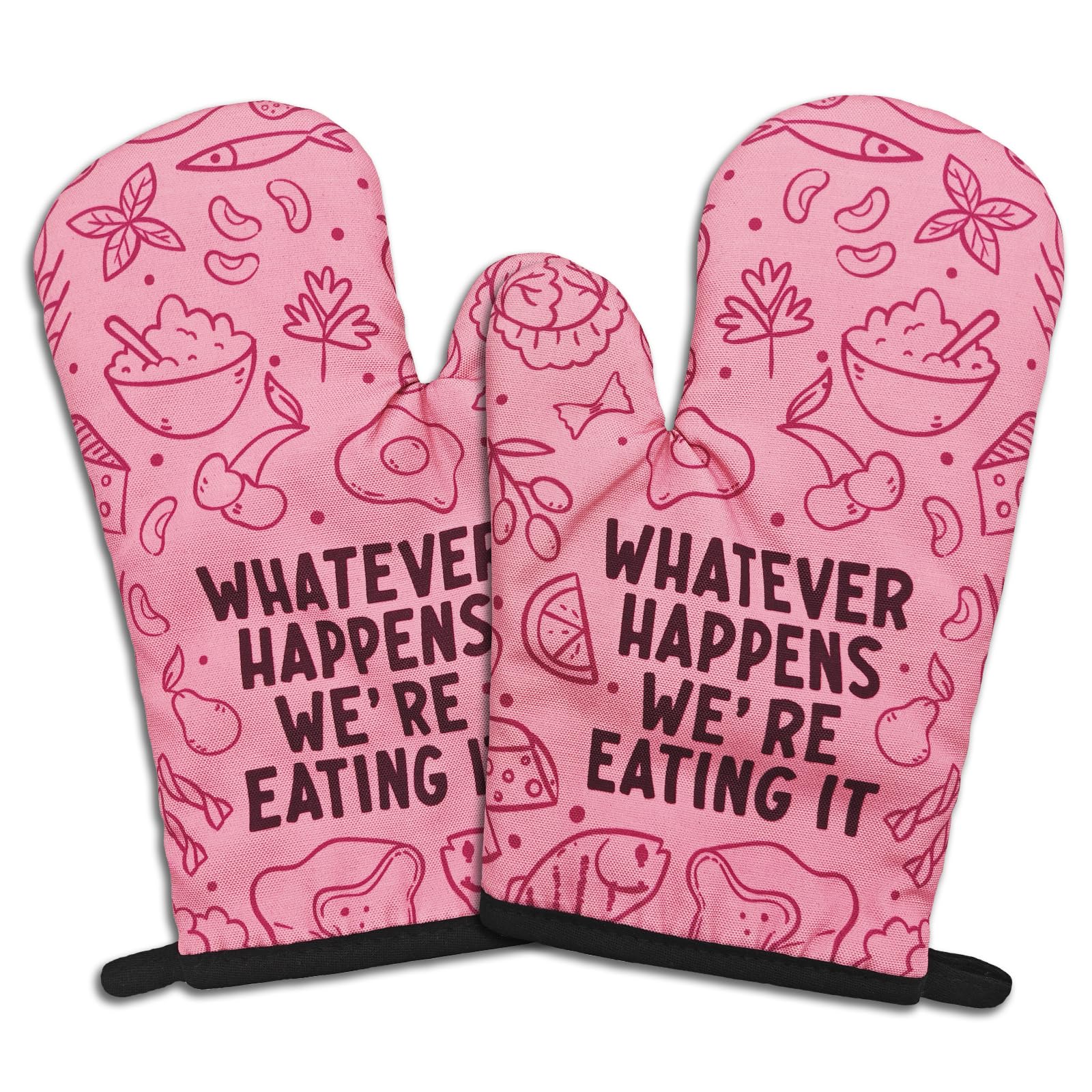 GOSJINNK 2 Pcs Funny Pink Oven Mitts Whatever Happens We're Eating It Silicone Non-Slip Heat Resistant Oven Mitts with Hanging Loop Kitchen Decor|Kitchen & Dining