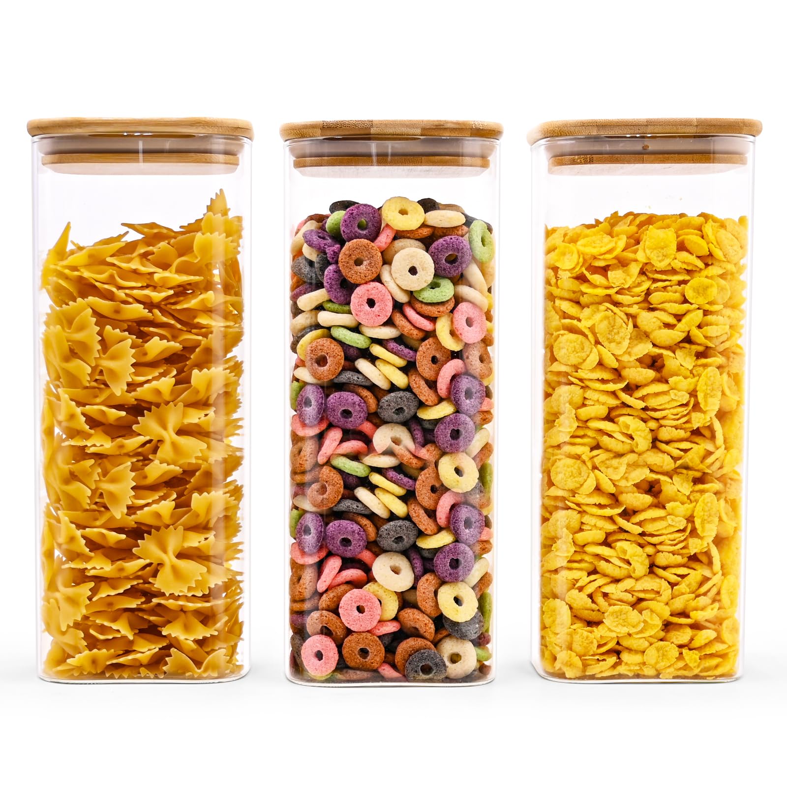 SHOWIN Glass Food Storage Jars Square 61oz, 3 Pack Glass Jars With Bamboo Lids, Kitchen Storage Containers For Spice, Candy, Cookie, Storage For|Kitchen & Dining
