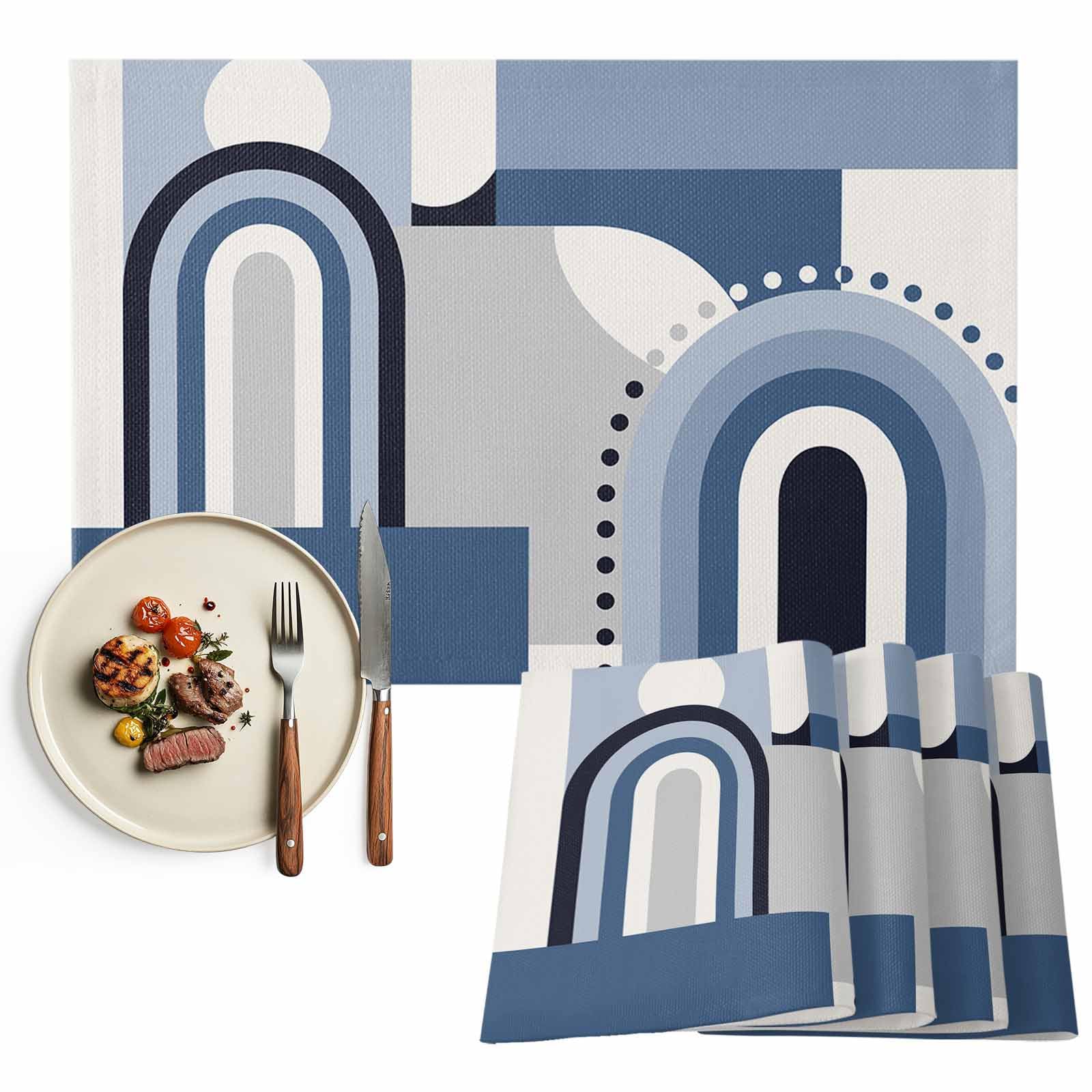 Table Placemats Set of 12,Modern Mid Century Geometric Art Non-Slip Kitchen Dining Tables Place Mat,Minimalist Abstract Blue Washable Table Mats for|Kitchen & Dining