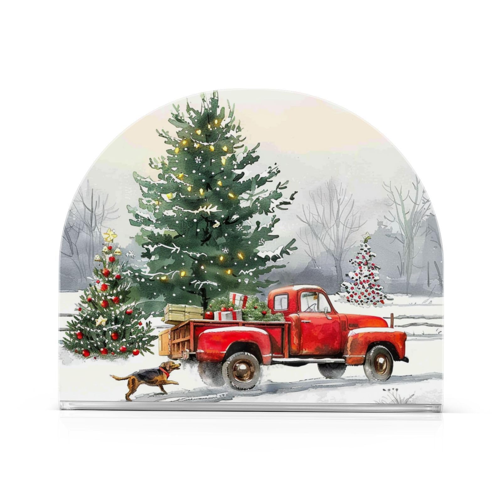 Caikeny Napkin Holder for Tables Christmas Tree Snow Truck Dog Acrylic Napkins Holders Winter Freestanding Tissue Dispenser Box for Kitchen Dining|Kitchen & Dining
