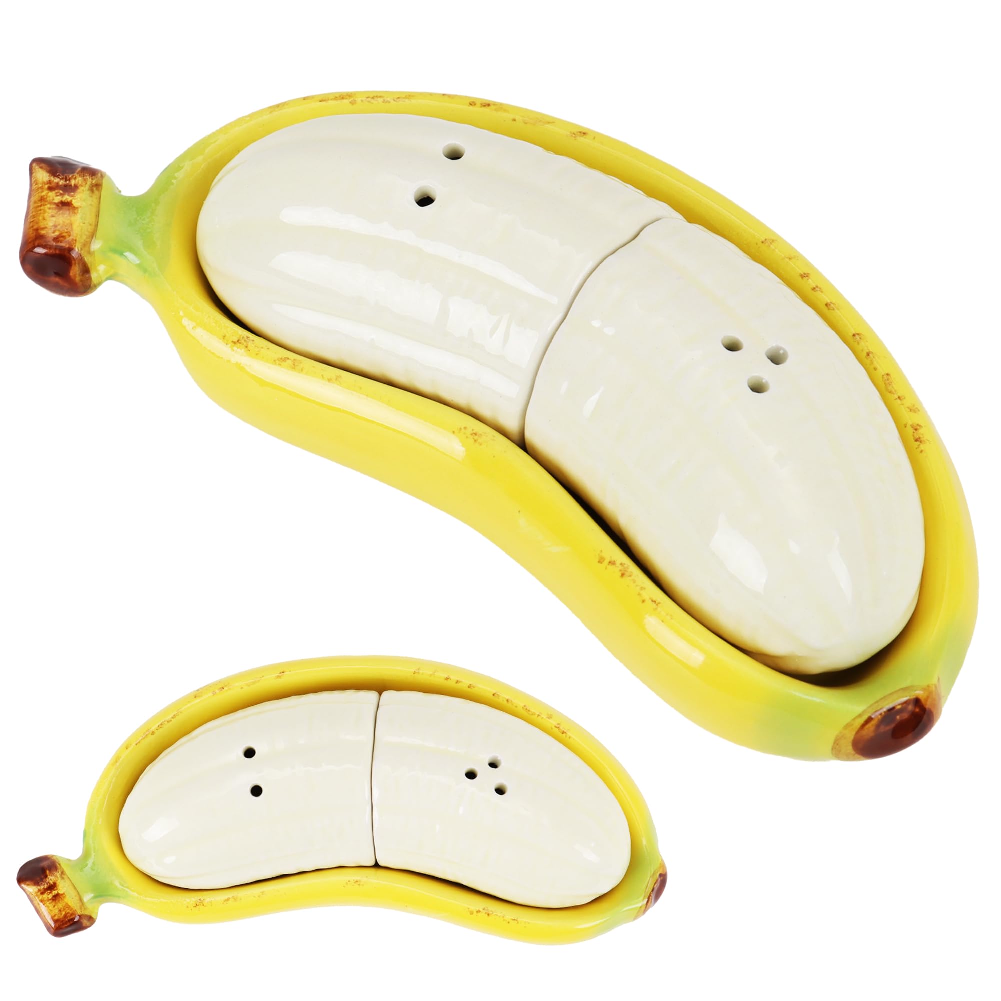 Banana Salt and Pepper Shakers Set with Banana Boat Tray – Hand-Painted Ceramic Kitchen Decor, Cute Fruit Tableware, Fun Tropical Dining Accessory,|Kitchen & Dining