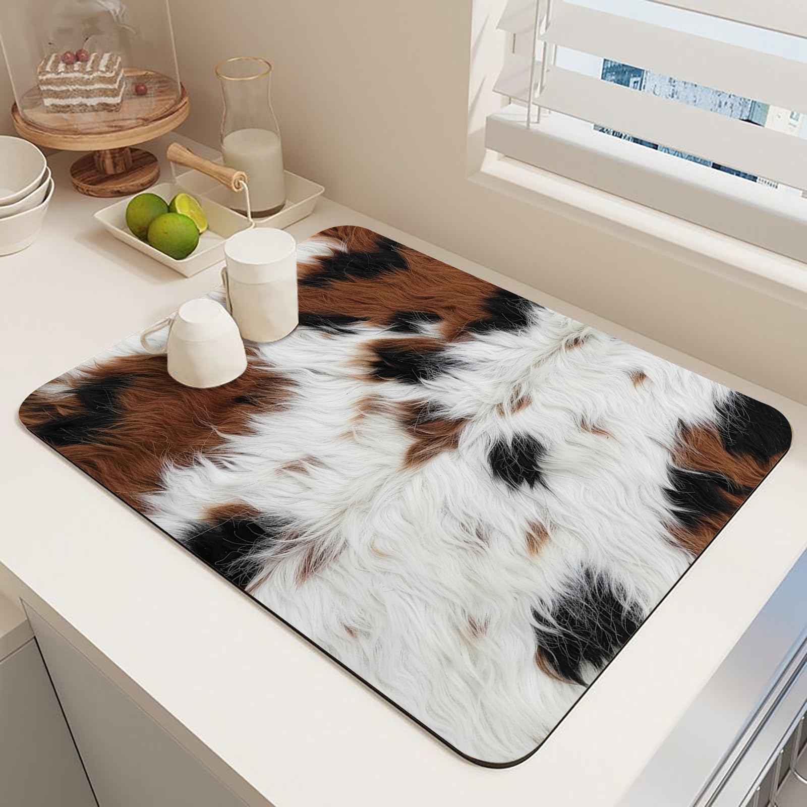 Tudguiloae Coffee Bar Mat Super Absorbent Rubber Anti Slip Bottom Striking Cow Anti Stain Coffee Mat for Countertop Large Dish Drying Mat Accessories|Kitchen & Dining