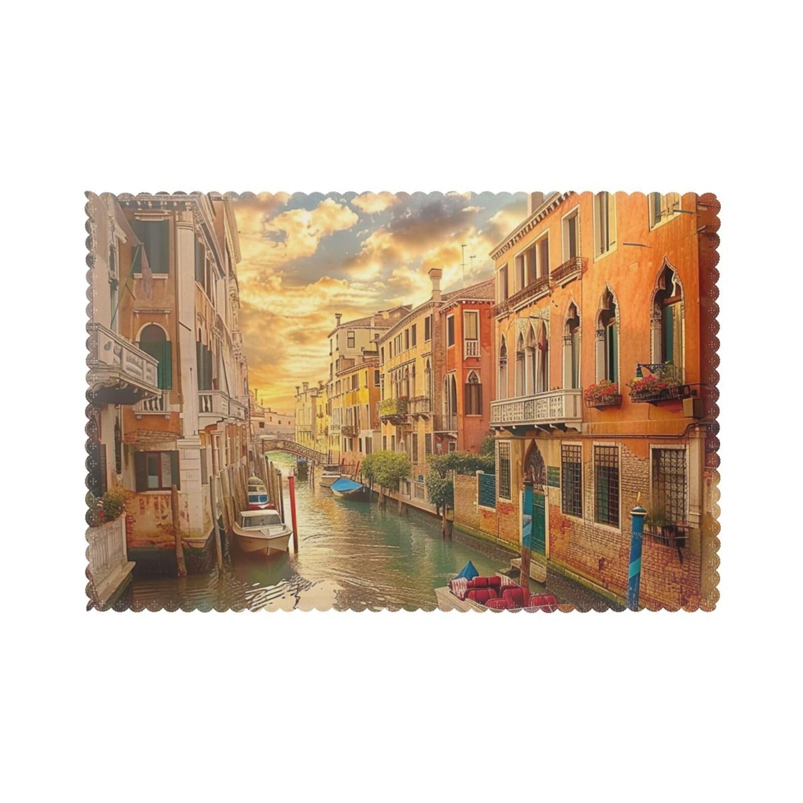 Beautiful Venice Canal View Printed Heat Resistant Placemats 6 PCS - Non-Slip Washable Kitchen Table Mats for Dining, Parties & More (18x12in,|Kitchen & Dining