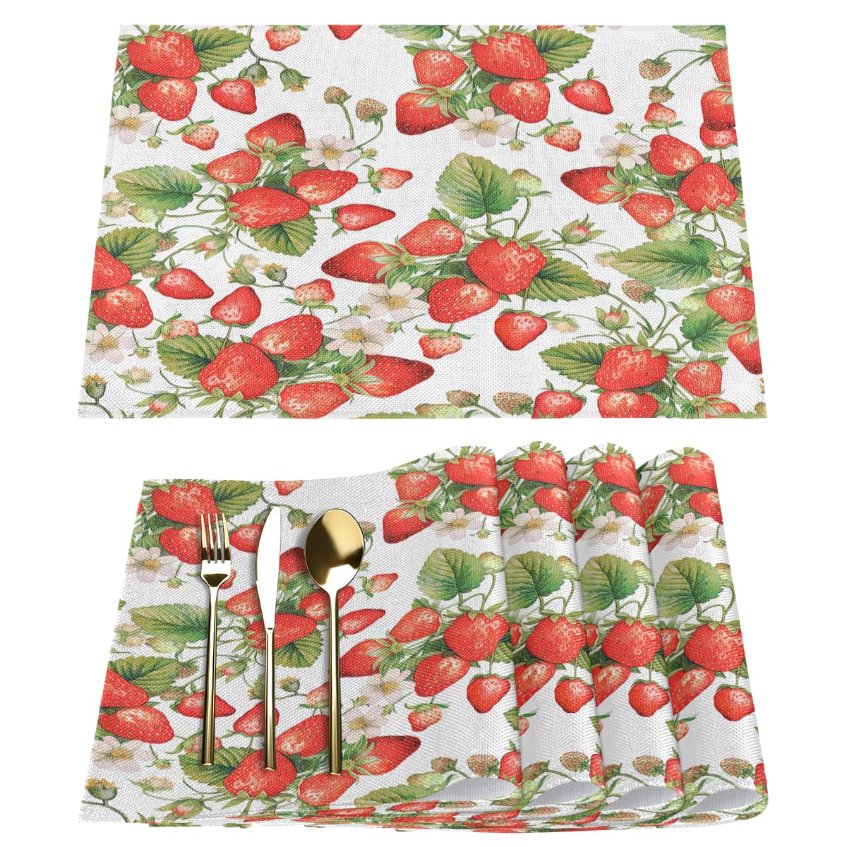 Strawberry Placemats Set of 4 Washable Kitchen Dining Table Mats 12 x 18 Inch Modern Cloth Place Mats Non-Slip Heat Resistant Placemats for Home|Kitchen & Dining