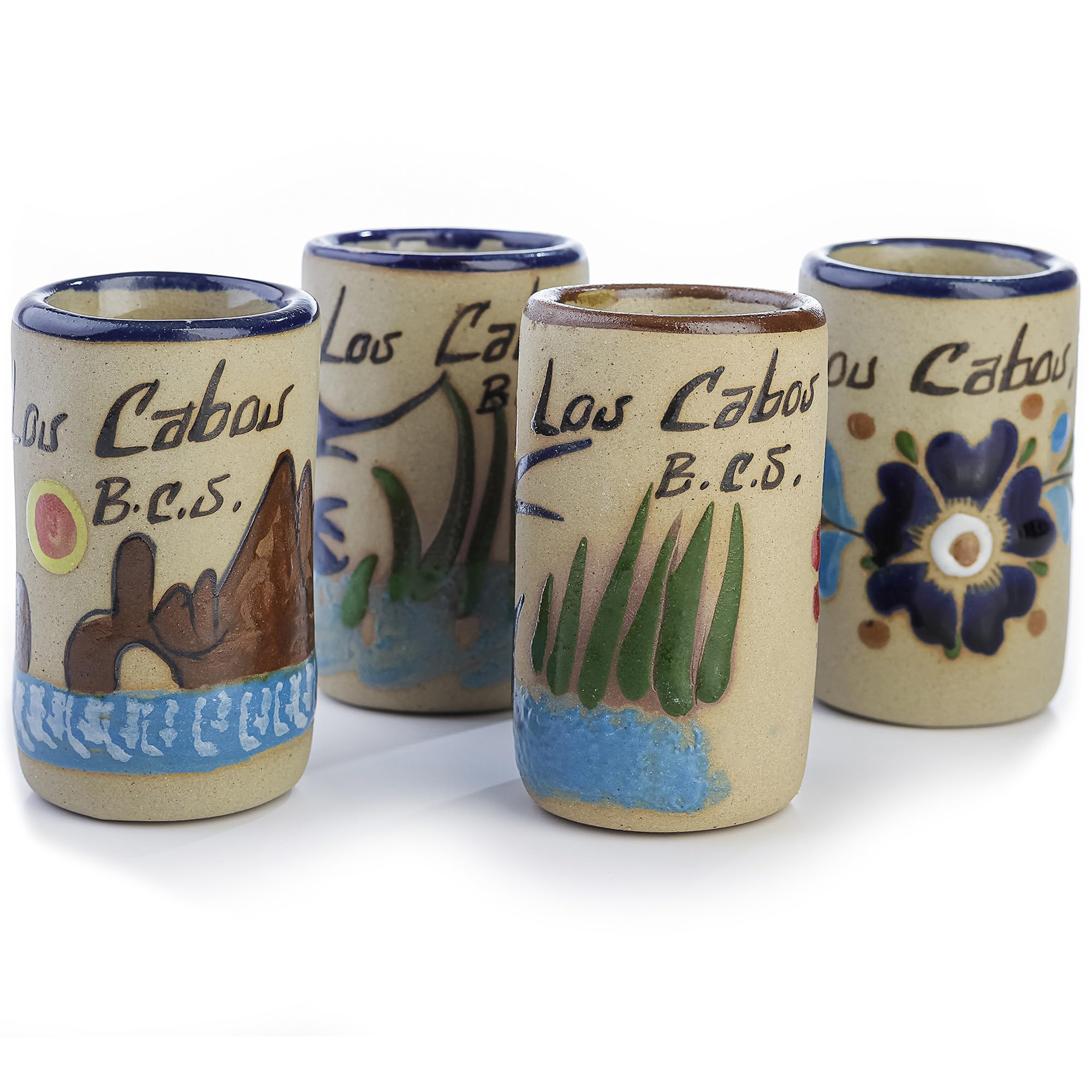 MEXTEQUIL - Tequila Shot Glasses - Set of 4 Mexican Shot Glasses - 2 Oz - Ceramic - Mexican Beach Collection- Handcrafted Hand-painted (Los Cabos)|Kitchen & Dining