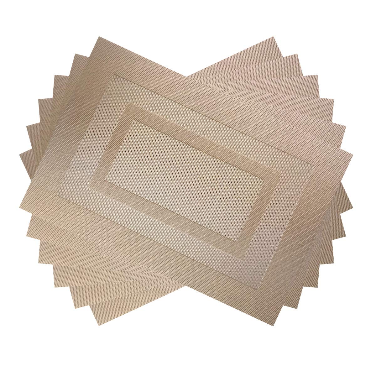 PIGCHCY Placemats Set of 6,Washable Woven Vinyl Kitchen Table Mats Non Slip Durable Placemats,Heat Resistant Placemats for Dining Table (Champagne)|Kitchen & Dining