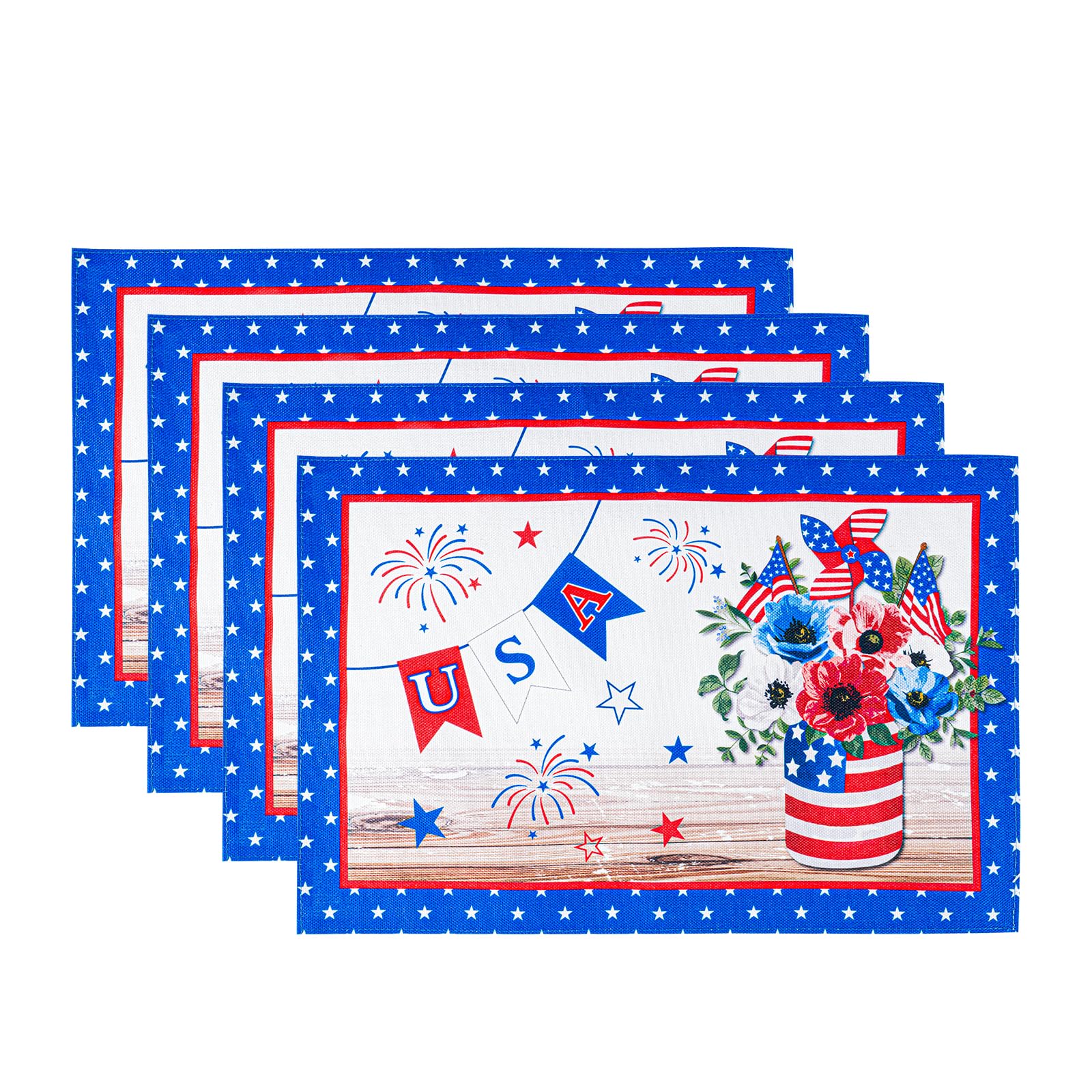 4th of July Placemats Set of 4, 12x18 Inch Patriotic Placemats 4th of July Decorations Seasonal Holiday Table Mats for Party Kitchen Dining Decoration|Kitchen & Dining