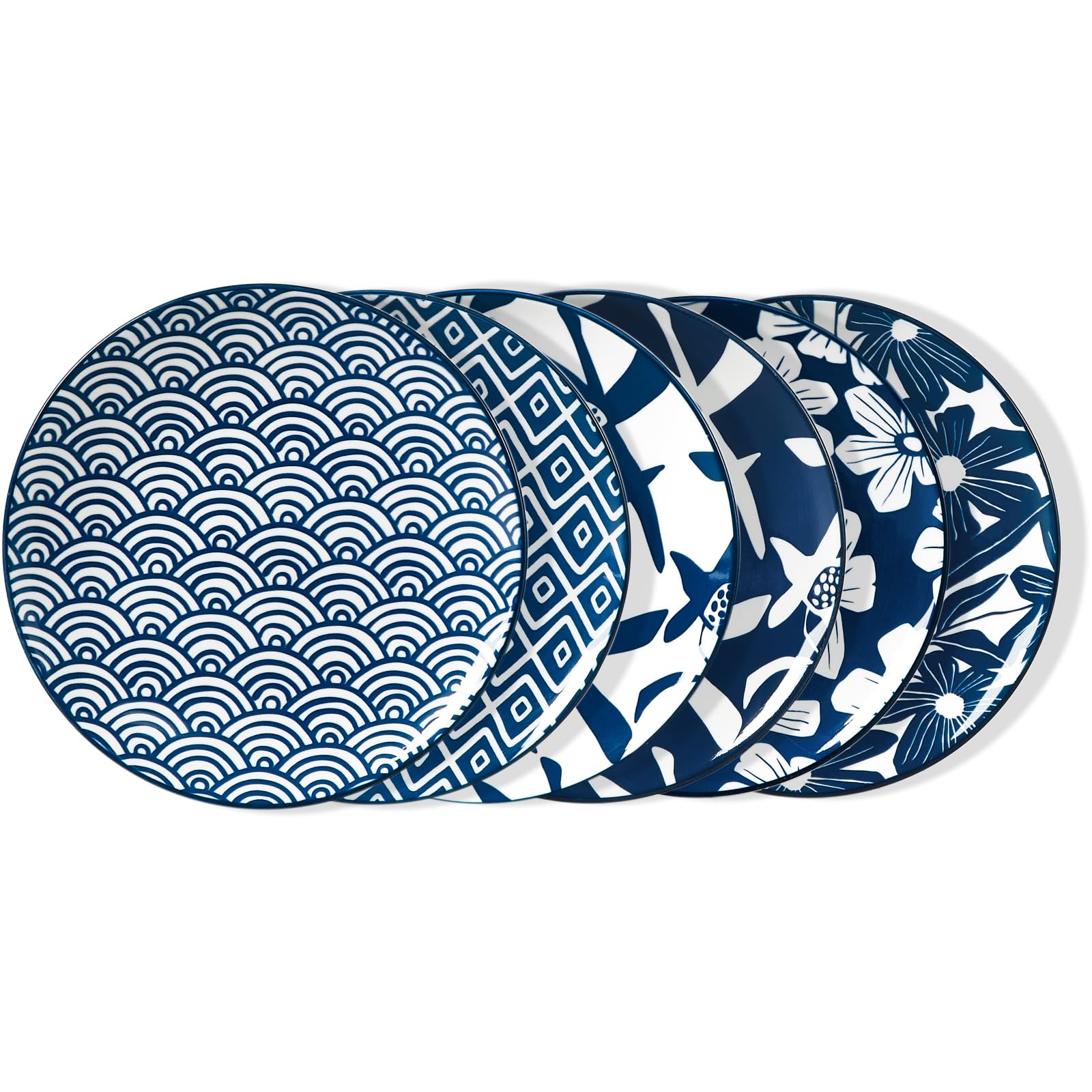 ONEMORE Ceramic Salad Plates Set of 6, 8.5 inch Dinner Plates- Microwave, Oven & Dishwasher Safe Porcelain Small Pasta Plates - Artistic Japanese|Kitchen & Dining