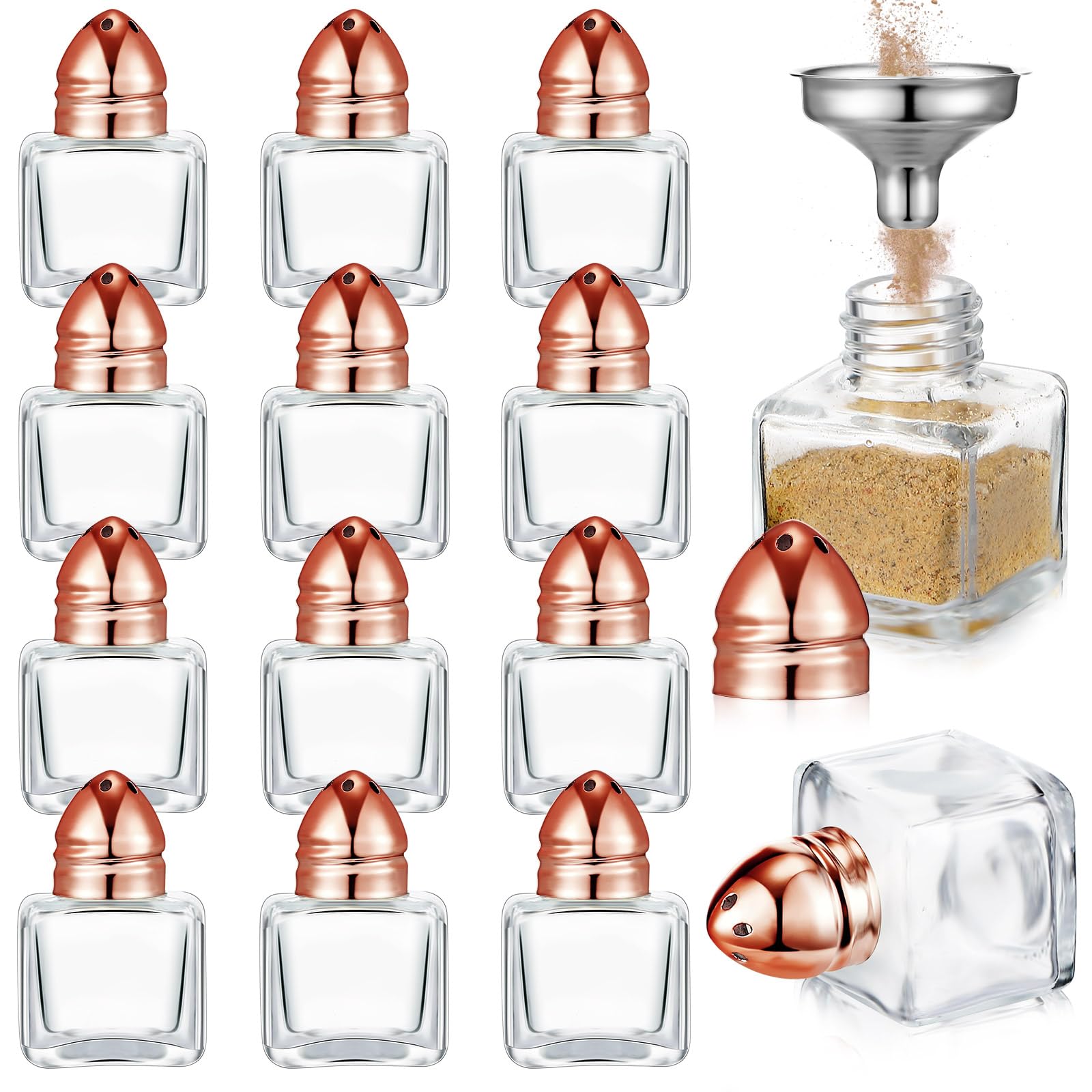 Uiifan 12 Pcs 0.5 oz Cube Shape Small Salt and Pepper Shakers with Tone Tops Clear Mini Glass Seasoning Jars Spice Salt Shakers with Funnel for|Kitchen & Dining