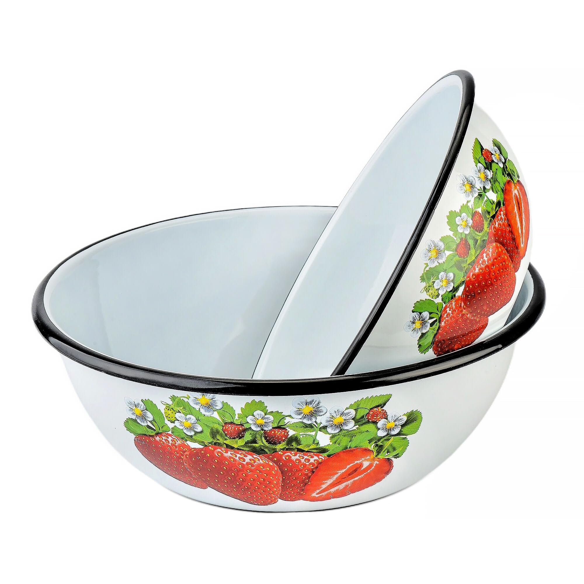 STP GOODS Enamel Bowl Set of 2, Enamel Serving Bowl, Enameled Steel Mixing Bowl for Cooking Prepping, Vintage Salad Bowl (Strawberry 2.7 Qt (2.5 L),|Kitchen & Dining