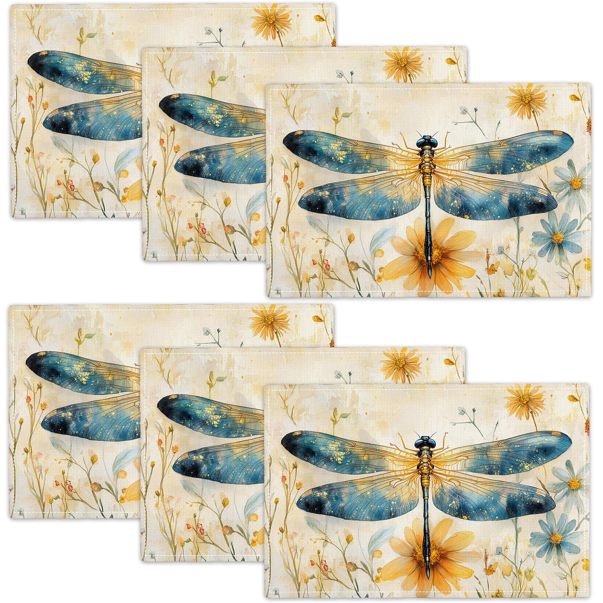 Dragonfly Placemats Set of 6 Dragonfly Table Mats Washable Place Mats for Home Party Indoor Kitchen Dining Table Decoration 12x18 Inch|Kitchen & Dining