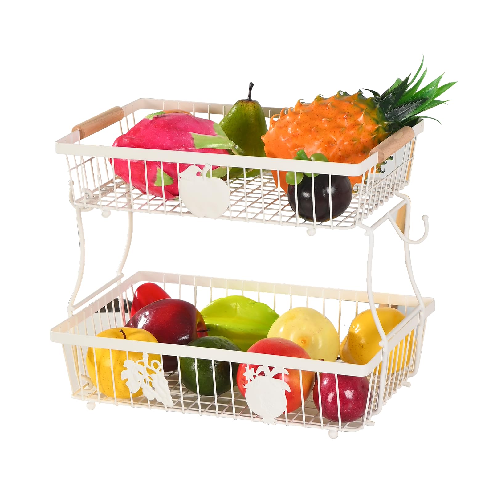 Lawhood-Mijin 2 Tier Fruit Basket Bowl with 2 Banana Hangers, Fruit Stand Holder for Kitchen Countertop, Detachable Metal Wire Vegetable Storage|Kitchen & Dining