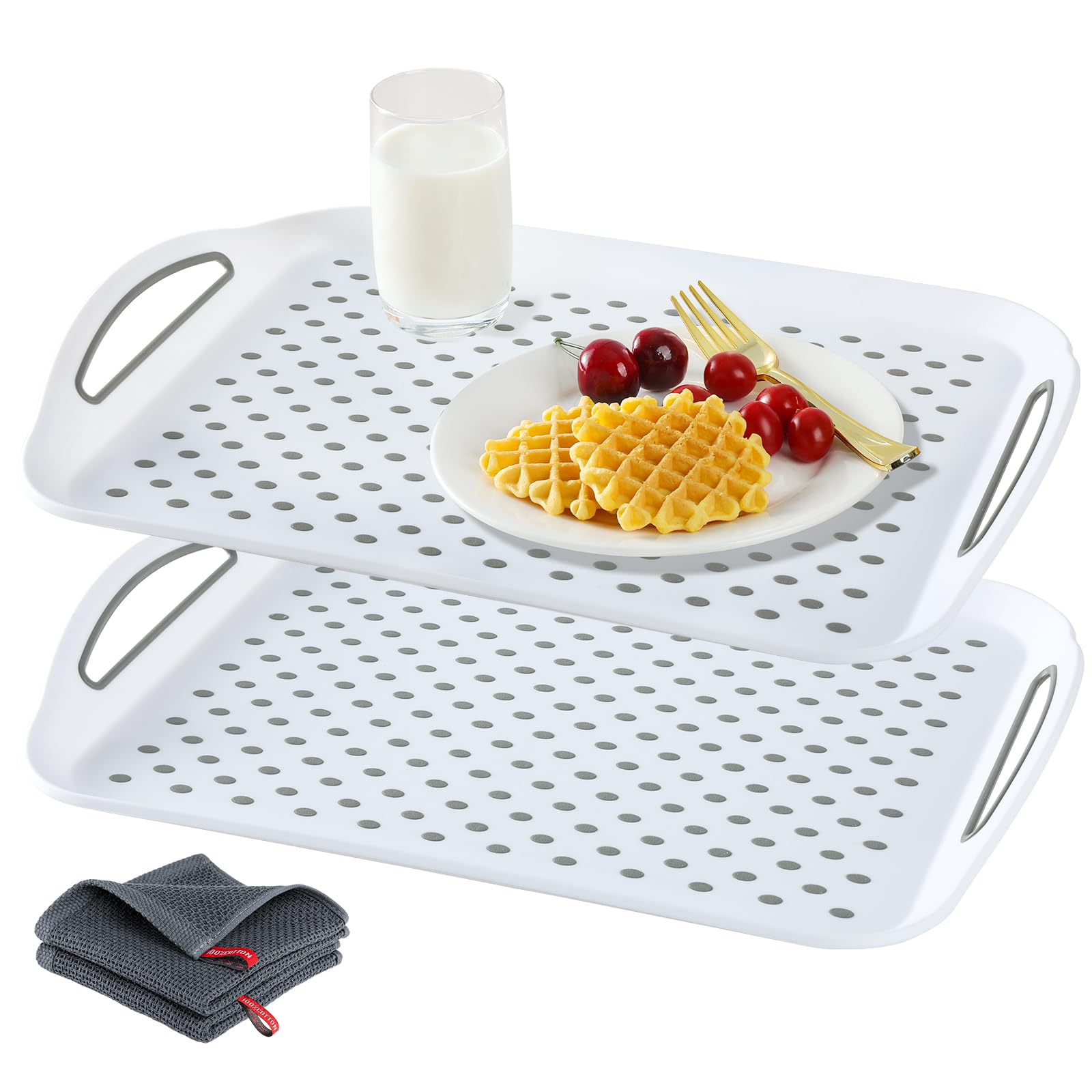 Large Non-Slip Serving Tray with Handles - Suitable Serving Tray, Food Tray, Trays for Serving Food,Serving Platters - an Ideal Dining Choice, White -|Kitchen & Dining