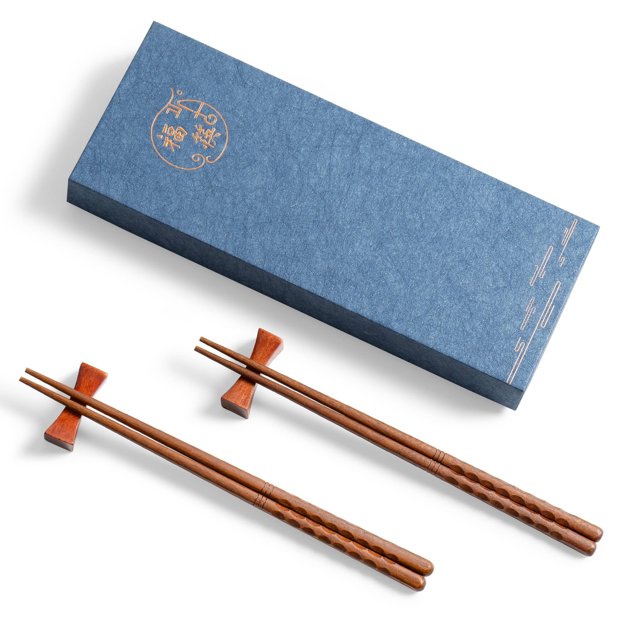 Hefild 2 Pairs of 9.2 Inch Reusable Chopsticks, Concave-shaped Rest + Grooved Chop Sticks, Wood Reusable Chopstick for Adults, Chinese Wooden|Kitchen & Dining