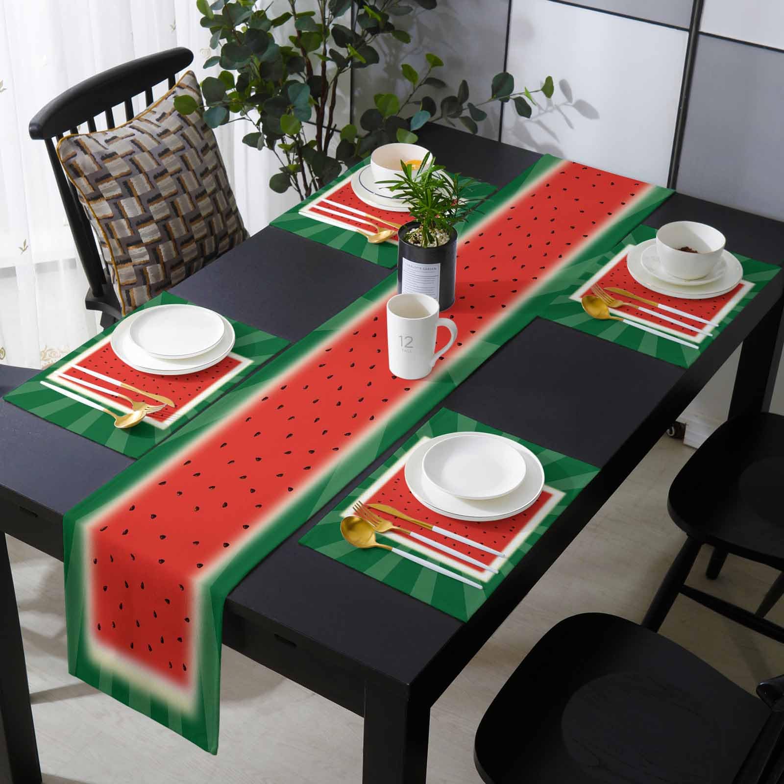 Victoroes Watermelon Table Runner and Placemats Set of 6 Summer Tropical Fruit Watermelon Cotton Linen Dining Table Runner 70 Inch and Washable Table|Kitchen & Dining