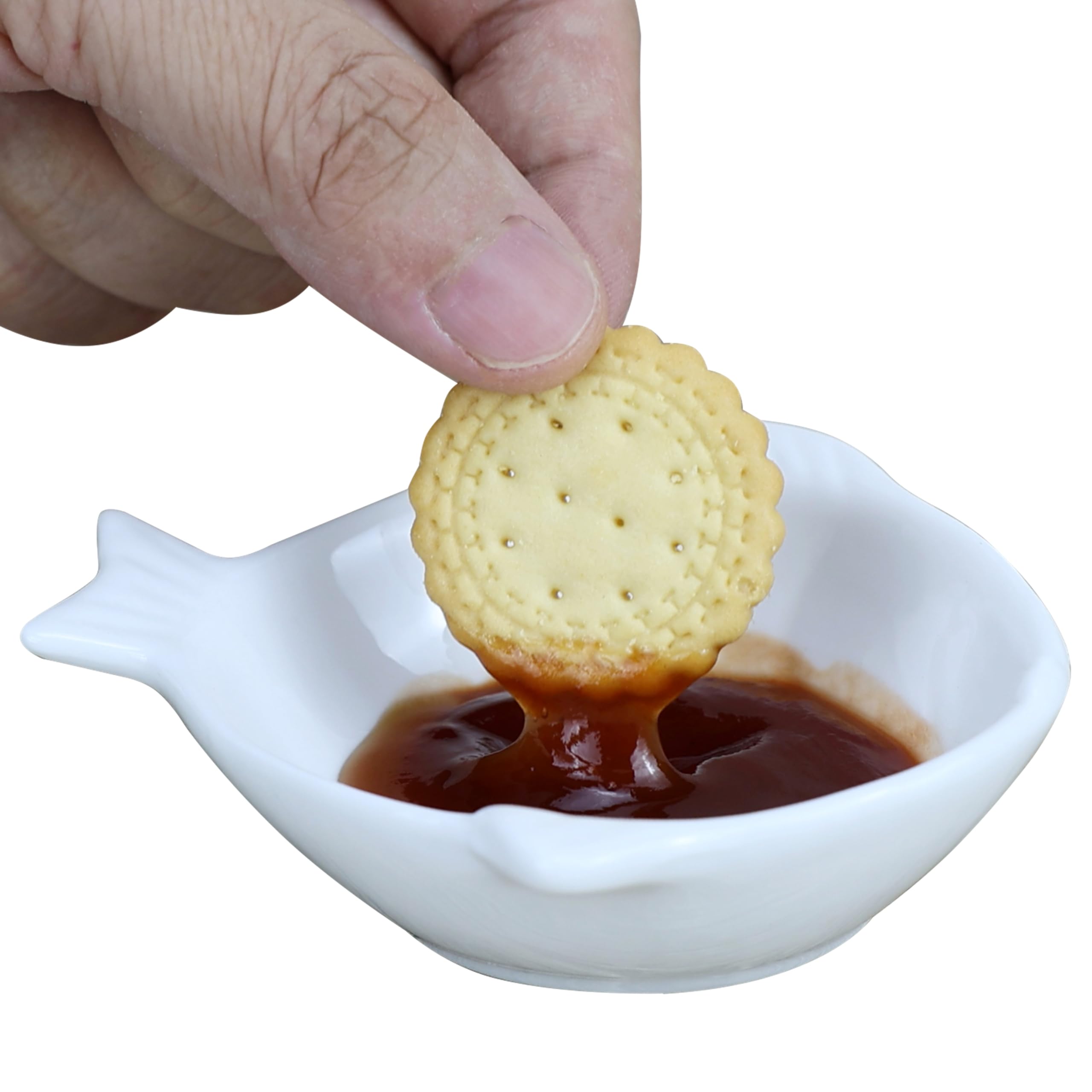 EIKS 6 Pack Ceramic Dipping Bowls Sauce Dishes for Serving ketchup Salad Sushi Wasabi Appetizer Condiments BBQ (Fish-shaped)|Kitchen & Dining