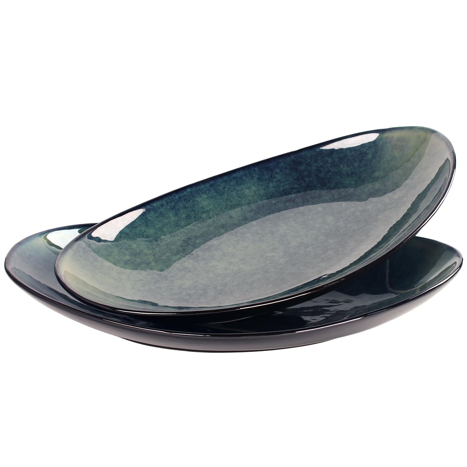 LIUYWYHCF Ceramic Serving Platters Set of 2, 16 Inch Curved Oval Salad Plates for Entertaining, Modern Kitchen Dishes, Trays for Dinner, Fruit, Salad,|Kitchen & Dining