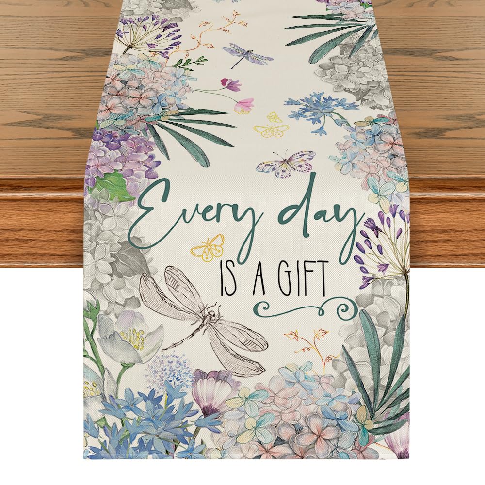 Artoid Mode Every Day is A Gift Dragonfly Hydrangea Spring Table Runner, Seasonal Summer Kitchen Dining Table Decoration for Home Party Decor 13x72|Kitchen & Dining