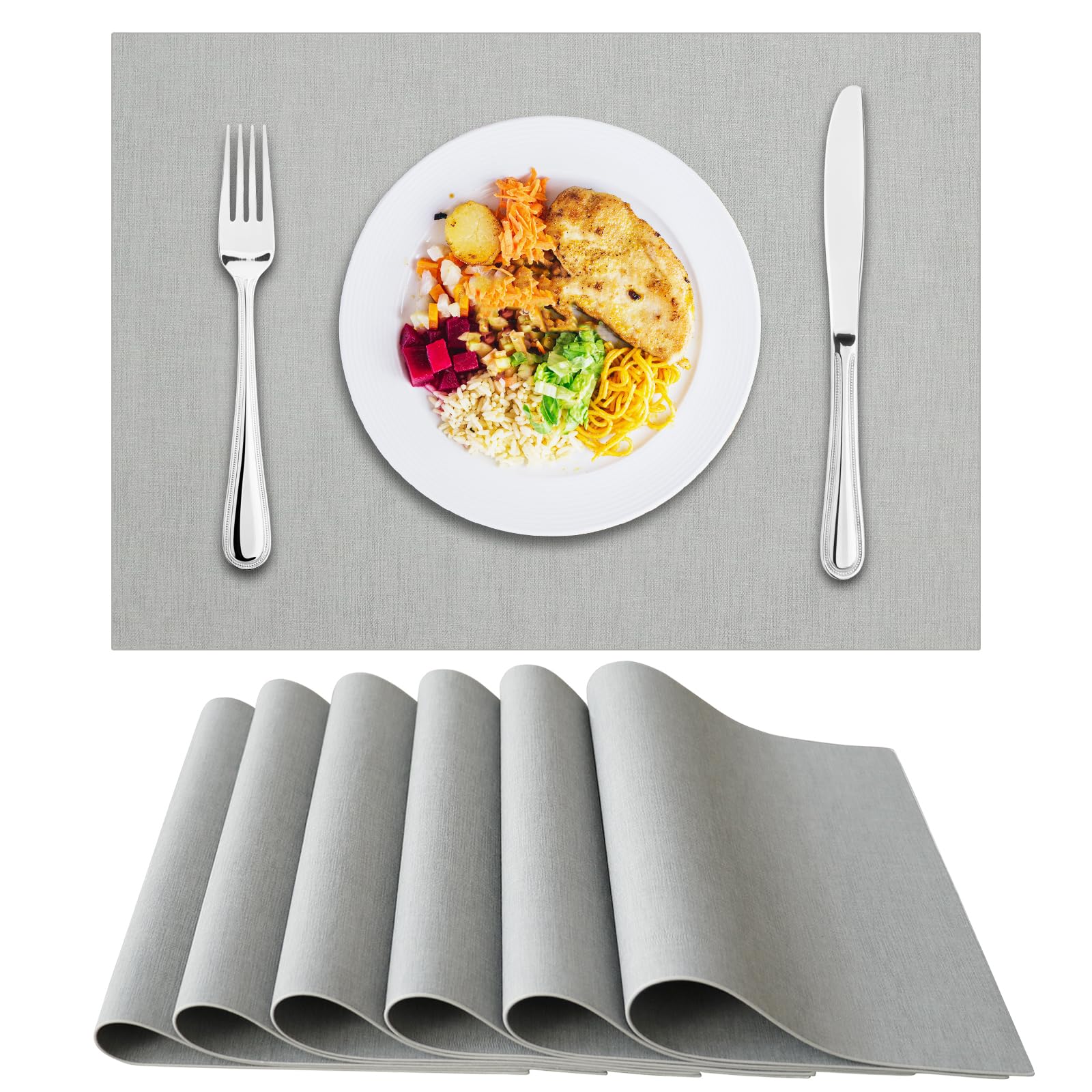 Sudifor Table Placemats Set of 6: 17 X 12 Inch Faux Leather Non-Slip Reversible Place Mats - Waterproof Heat Resistant Wipeable Vinyl Table Mats for|Kitchen & Dining