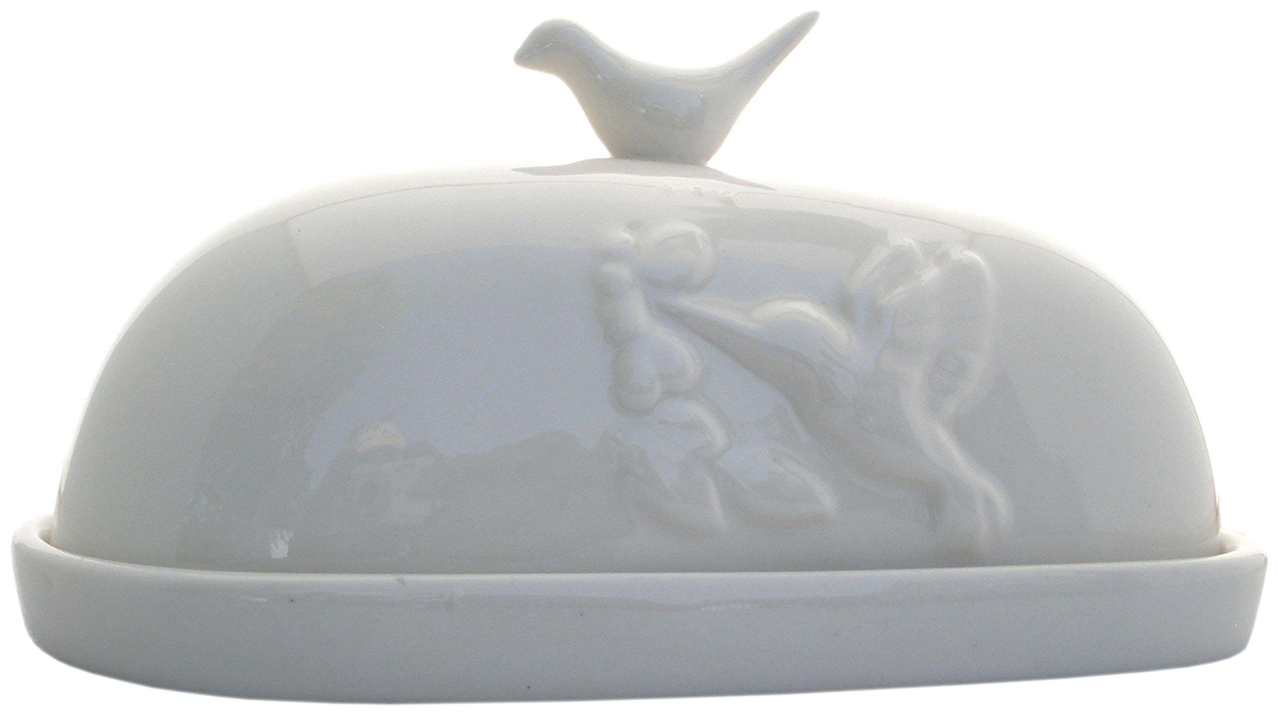 JBK Pottery Hummingbird Butter Dish - White (Large Capacity) Fits East or West Coast Butter! Large enough to hold 2 sticks of butter|Kitchen & Dining