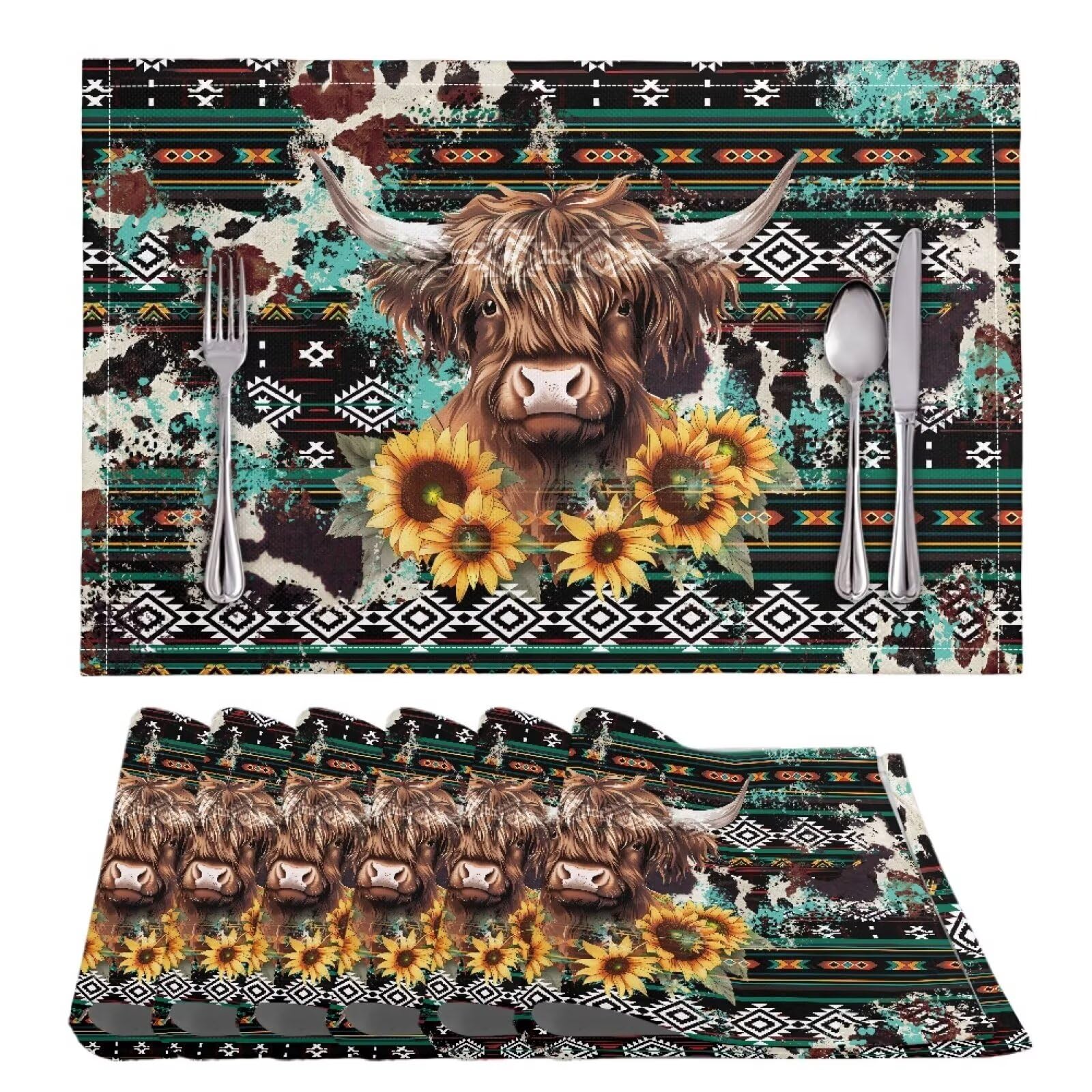 Garucesta Placemats Set of 6 Washable Kitchen Place Mats Heat-Proof Dining Room Table Mats Dining Accessories and Decor Tablemats Place Mats, Aztec|Kitchen & Dining