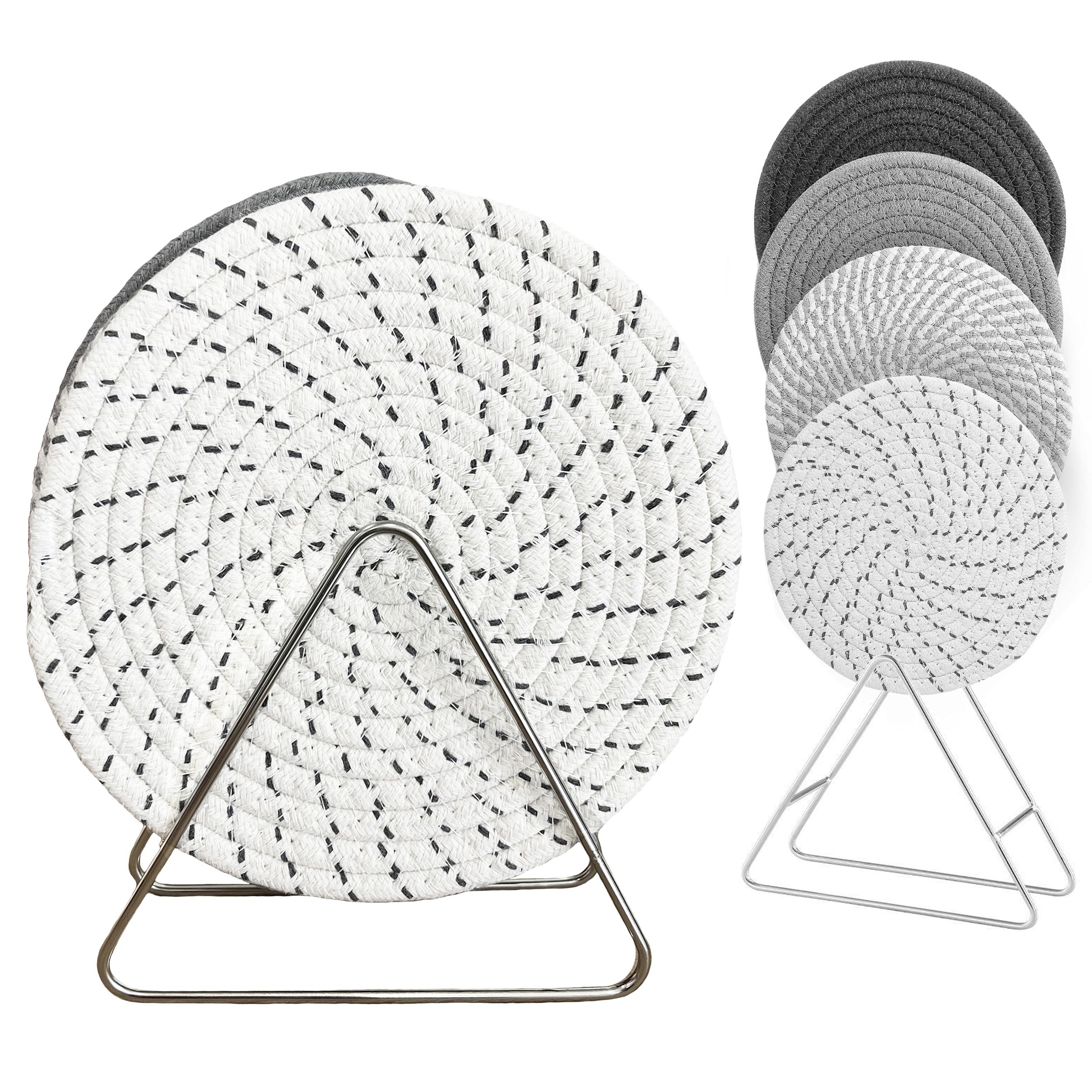 Pot Holders for Countertop with Storage Basket, 8 Inch Trivets for Hot Dishes, Pot Holders for Kitchen, Anti Stain Hot Pads Plate Mats for Hot Pots|Kitchen & Dining