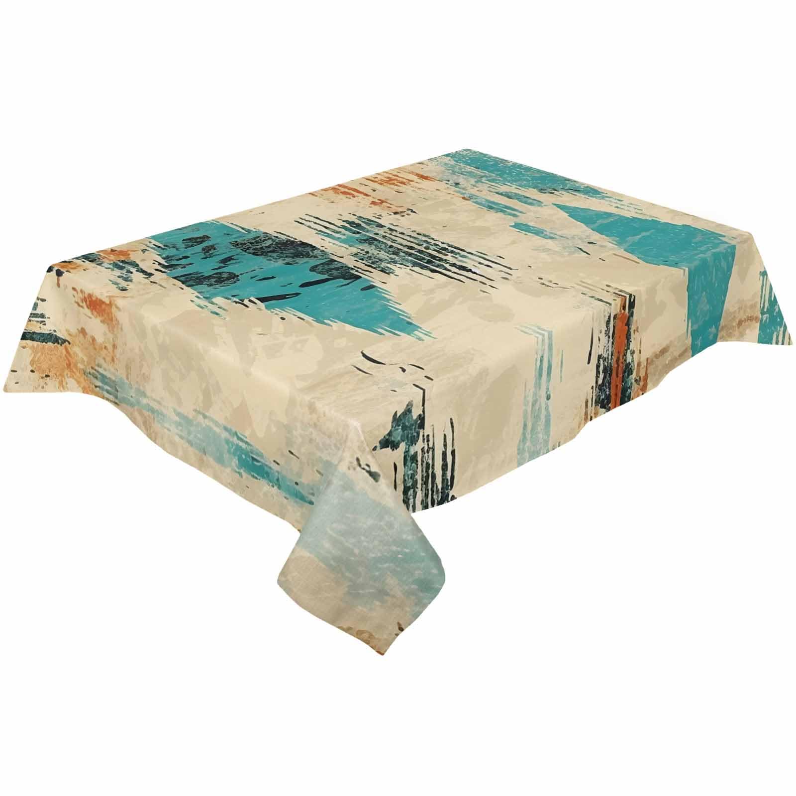 Victoroes Abstract Tablecloth Rectangle 60 x 84 Inch, Bohemian Teal Orange Texture Table Cloth Waterproof and Oil Proof Table Cover Decor for Kitchen|Kitchen & Dining