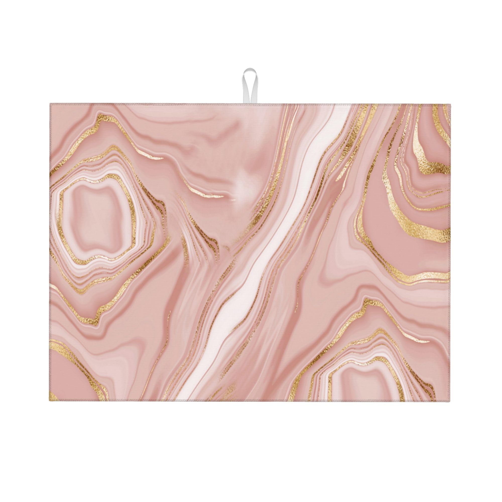 Pink Golden Dish Drying Mat for Kitchen Counter Absorbent Reversible Rose Pink Modern Drying Pad Dark Kitchen Decor Marble Dish Drainer Rack Mats 18"|Kitchen & Dining