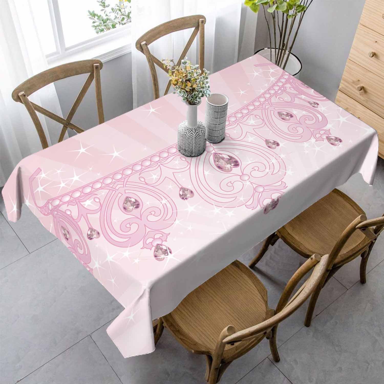 LoLo UoUo Princess Crown Rectangle Tablecloth 60x84 Inch Birthday Table Cloth Pink Beautiful Shining Crown Hairband Decorations for Kitchen Home|Kitchen & Dining