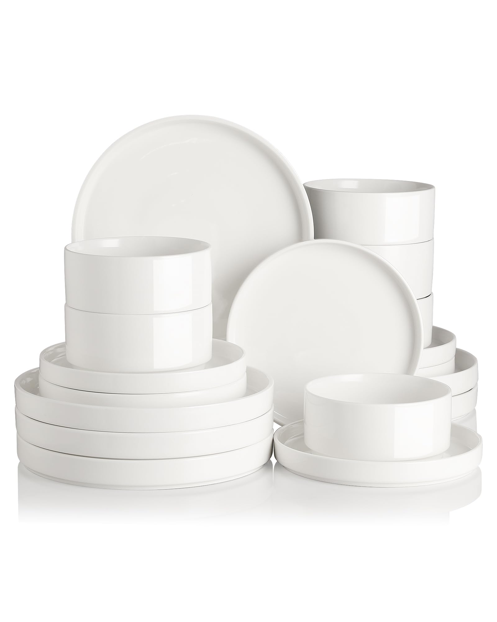 Sweejar Porcelain Dinnerware Sets for 6, 18 Pieces Ceramic Plates and Bowls Set, Classic Modern Simple Kitchen Dinner Dining Ware Set, Dishwasher and|Kitchen & Dining