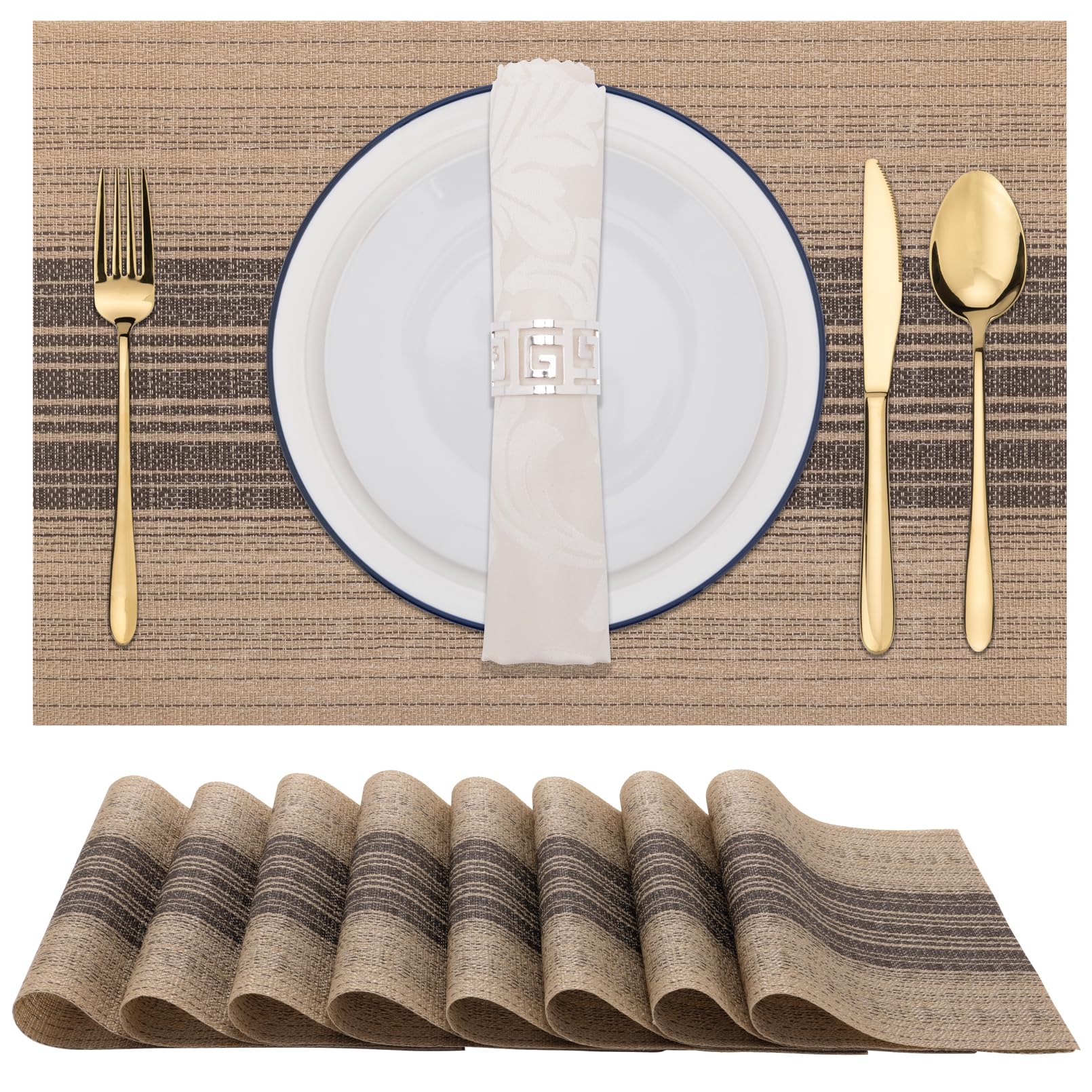Winknowl Placemats Set of 8, Washable Vinyl Woven Placemats, Heat Resistant & Wipeable Table Mats for Kitchen Dining Table (Brown)|Kitchen & Dining
