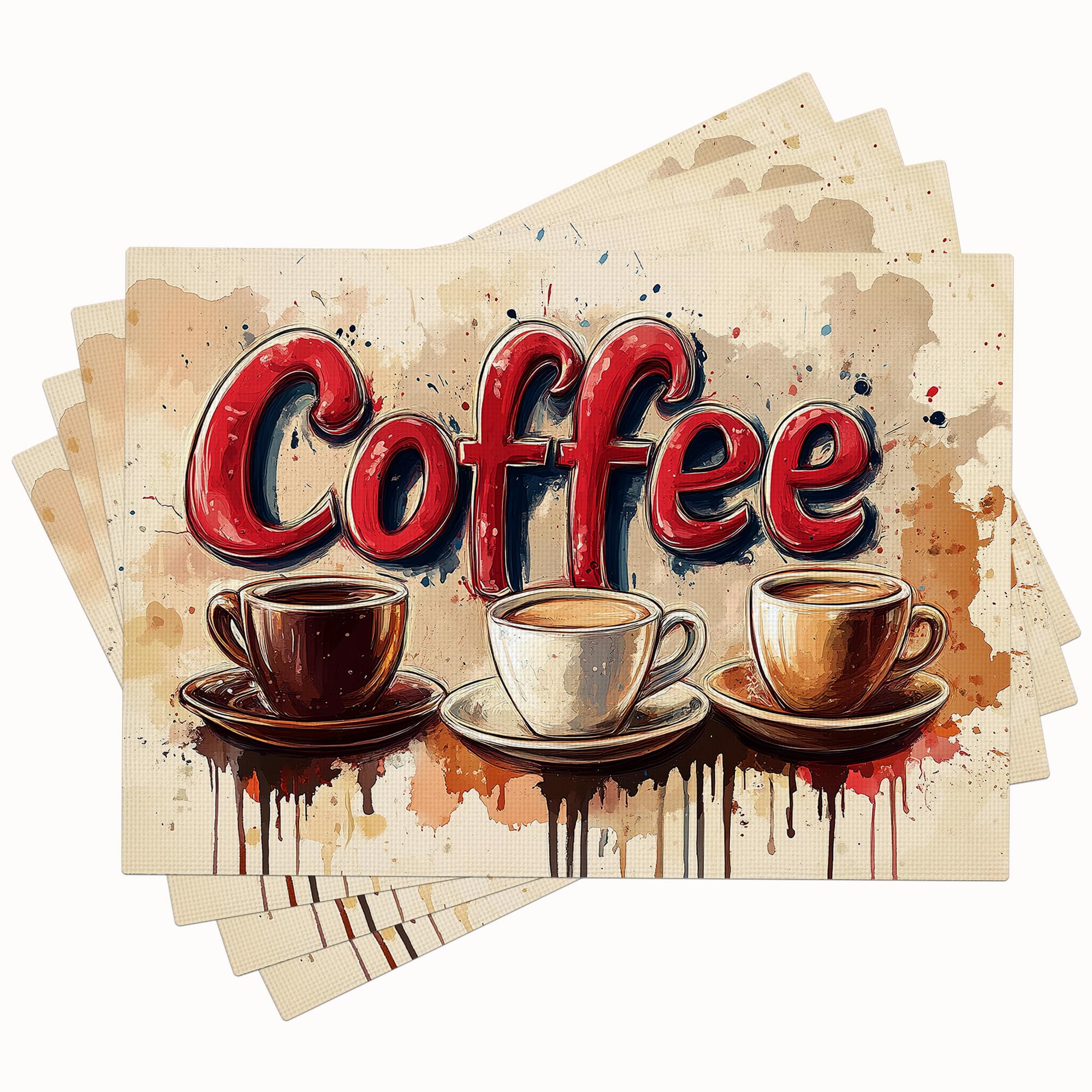 Coffee Placemats Set of 4 Cafe Table Mats Washable Place Mats for Home Party Indoor Kitchen Dining Table Decoration 12x18 Inch|Kitchen & Dining