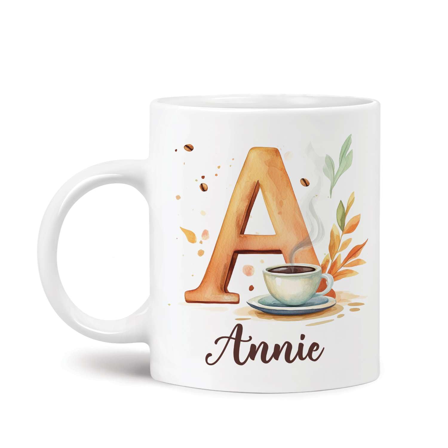 Personalized Initial A Coffee Cup 11oz 15oz, Custom Name Ceramic Mug, Letter A With Coffee Cup Detail, Gift For Men Women, Customized Monogram White|Kitchen & Dining