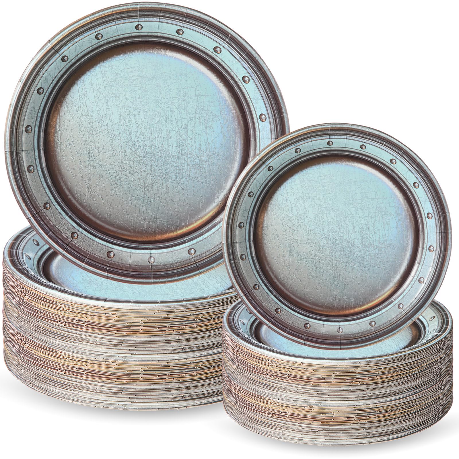 Jingmore 96 Pcs Medieval Party Tableware Disposable Pewter Paper Plates Set for Medieval Party Decorations Halloween Vintage Silver Grey for Pirate|Kitchen & Dining