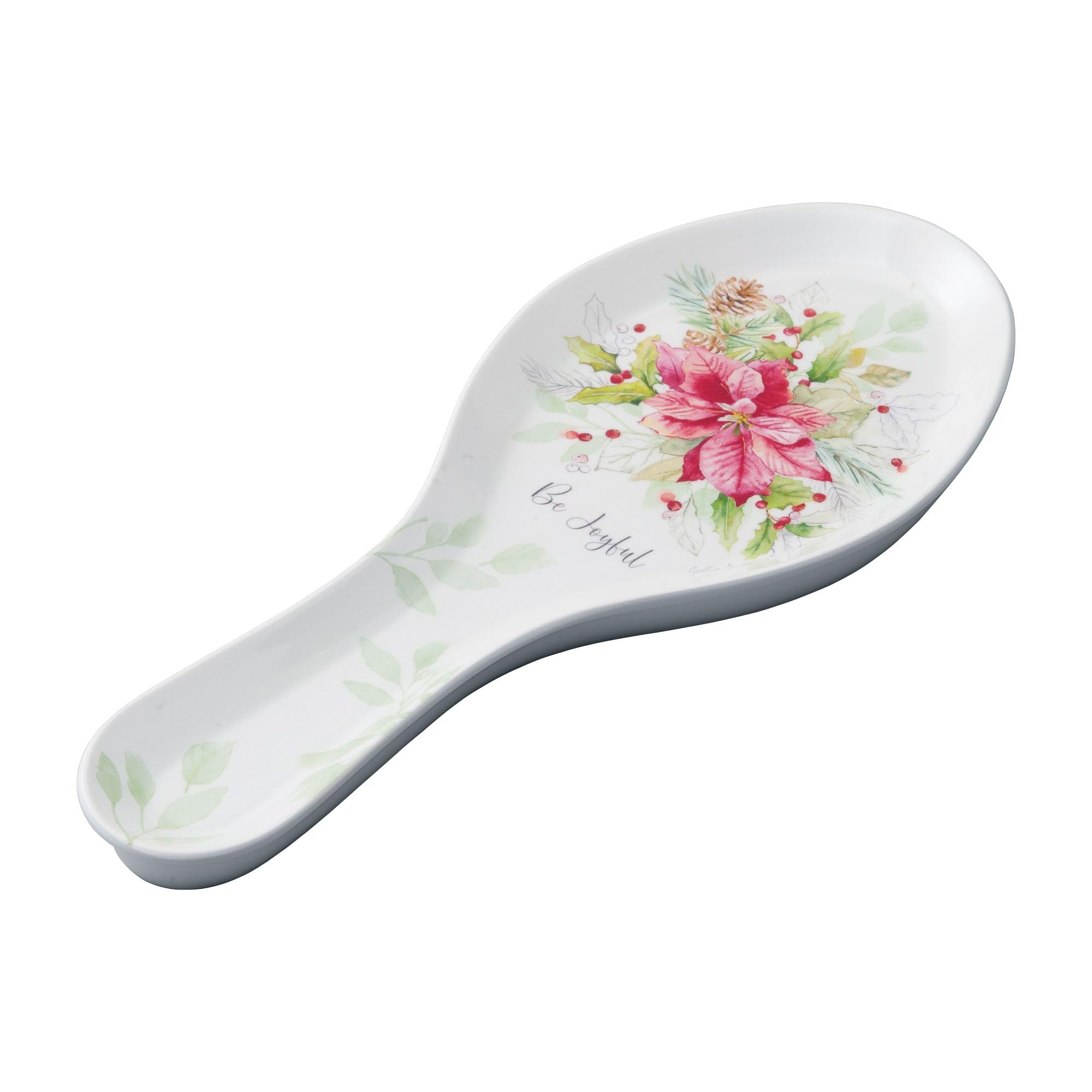 UPware Poinsettia Joyful Holiday Melamine Spoon Rest, Cooking Spoon Holder for Stove Top, Kitchen Counter, and Dining Table, 9.625 Inch, Pink|Kitchen & Dining