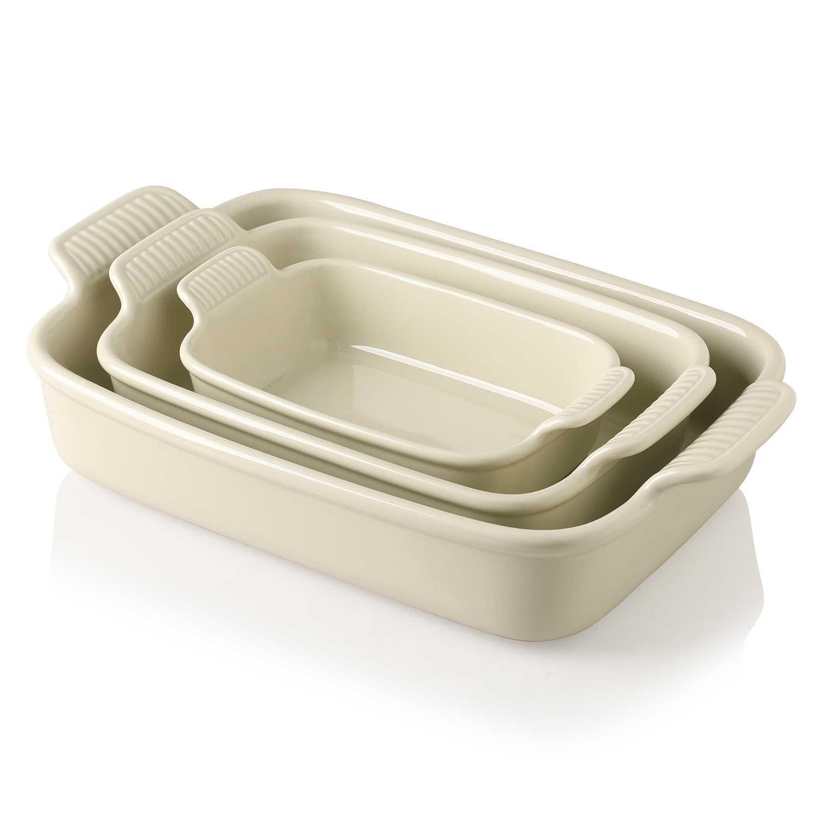 Sweejar Baking Pans Set, Ceramic 9x13 Baking Dish with Handle, Rectangular Casserole Dishes for Oven, Bakeware Sets of 3, Durable Lasagna Pan Deep for|Kitchen & Dining