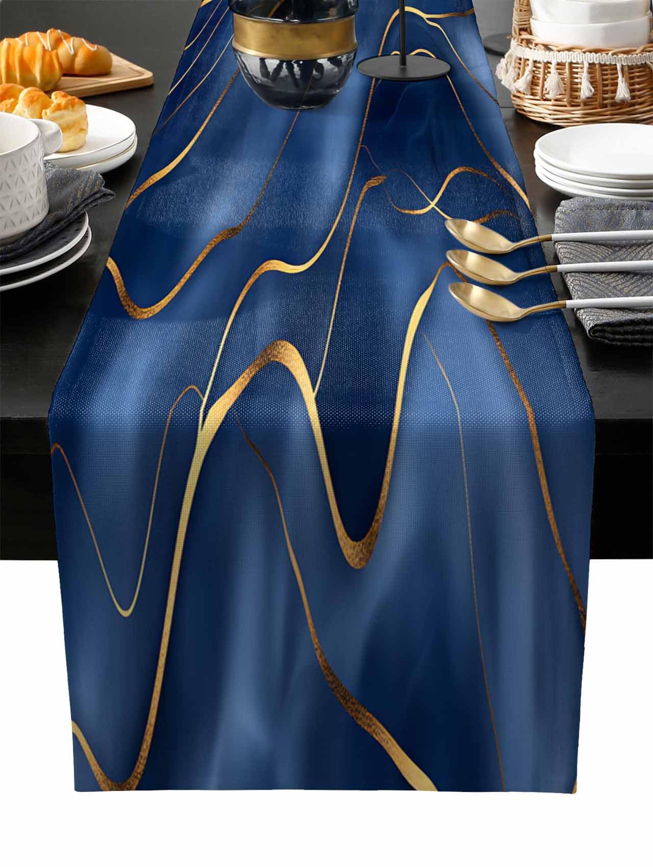 Navy Blue Gold Table Runner 120 Inches Long for Dining Table Decor,Minimalist Geometric Stripe Boho Art Burlap Linen Farmhouse Table Runner Coffee|Kitchen & Dining