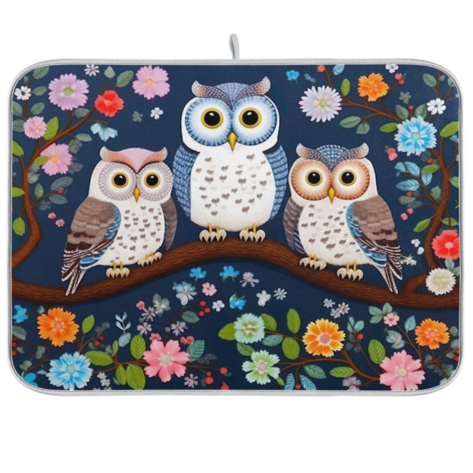 Wassud Dish Drying Mat Kitchen Counter Absorbent Three Owls Coffee Sink Mat Dish Drainer Pad 18 Inch x 24 Inch|Kitchen & Dining