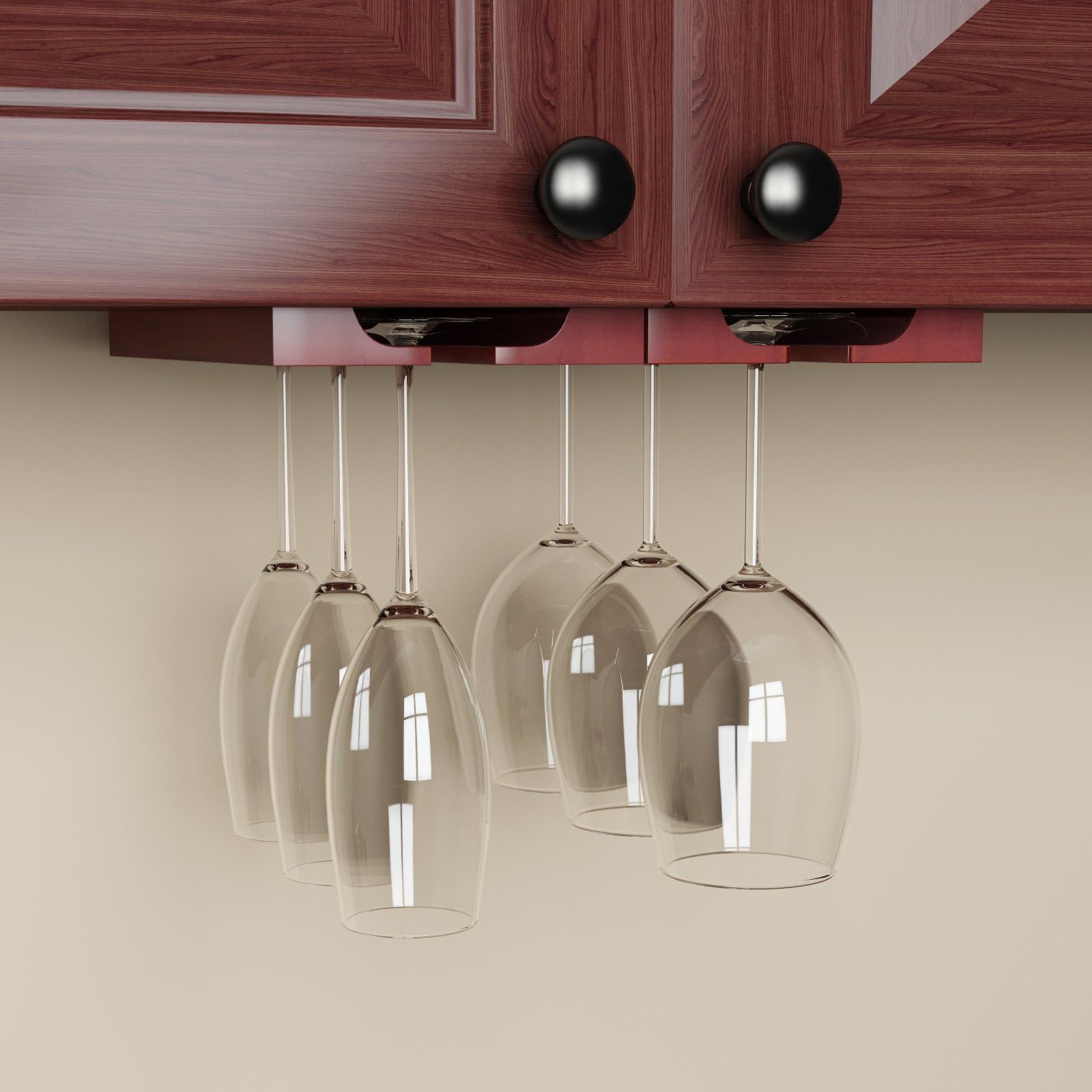 Rustic State Vigo 2 Sectional Adjustable Under Cabinet Mount Wood Stemware Rack Hanging Shelf Glassware Holder Bar Organizer with up to 6 Wine Glass|Kitchen & Dining