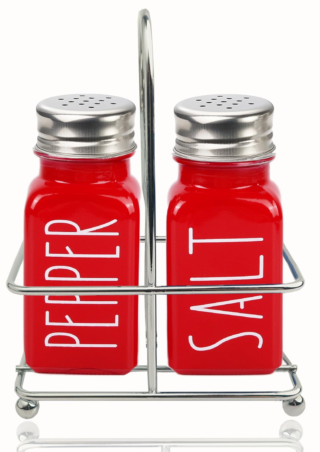 Red Salt and Pepper Shakers Set, Glass Salt And Pepper Shakers With Stainless Steel Lid, Farmhouse Decor for Kitchen,Perfect Kitchen Gadgets for|Kitchen & Dining