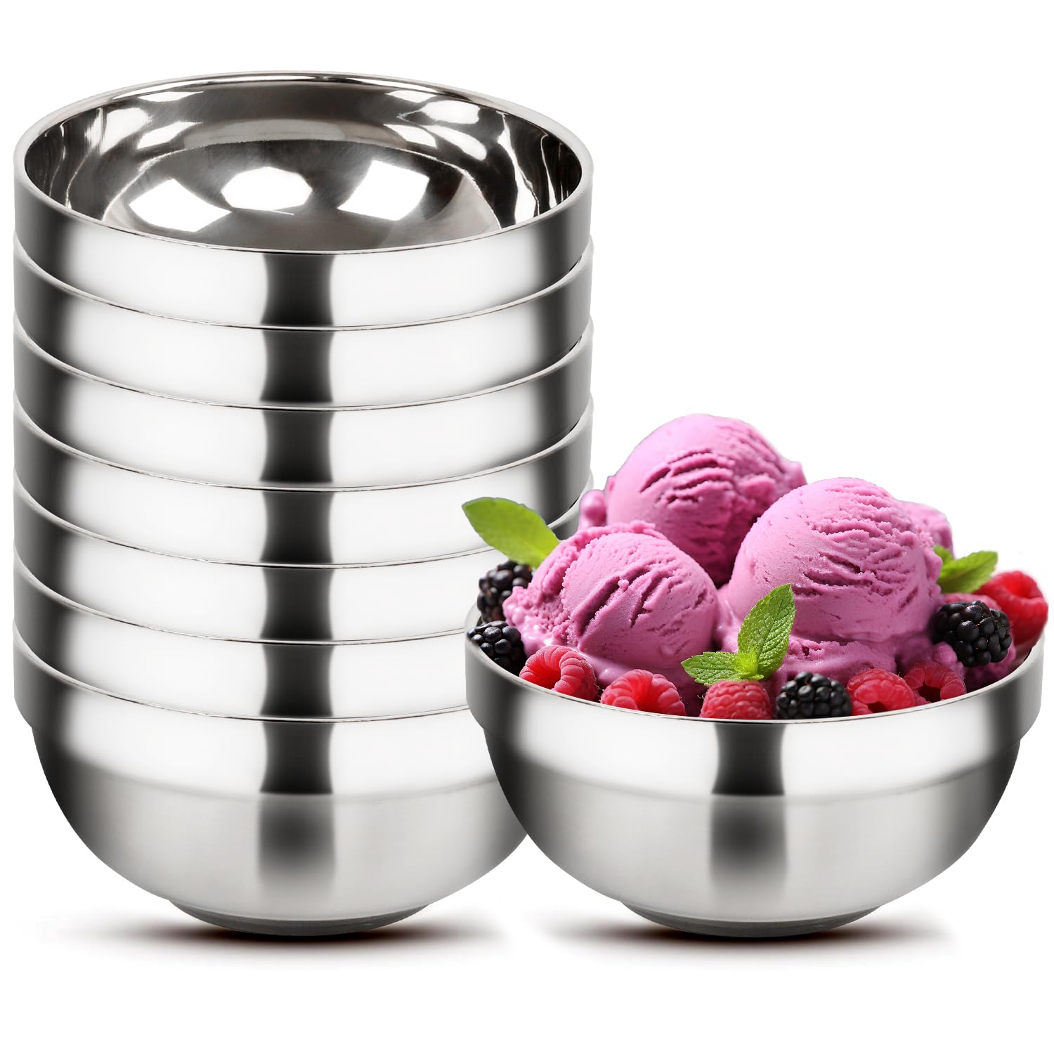 Stainless Steel Bowls, 5 Inch 15 Oz Snack & Soup Bowls, Lightweight Double-Walled Serving Dishes for Sauces, Rice, Noodles, Insulated Ice Cream &|Kitchen & Dining