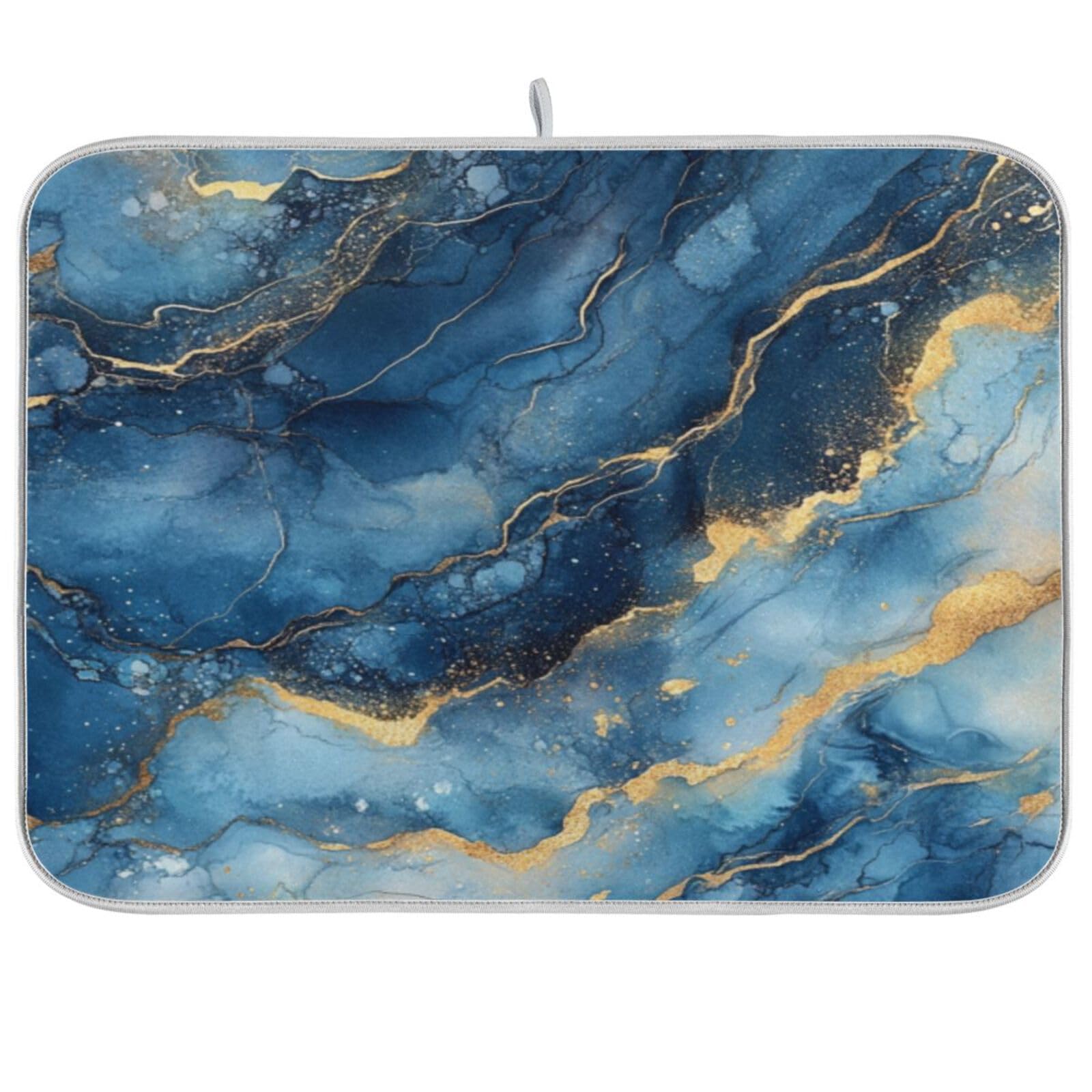 Blue and Gold Marble Dish Drying Mat for Kitchen Counter Mats Super Absorbent Reversible Microfiber Kitchen Countertop Protector Dishes Pad Large|Kitchen & Dining