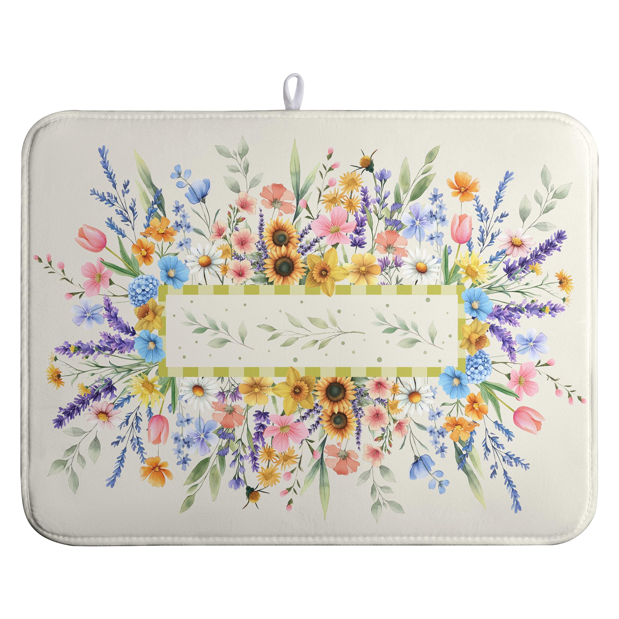 Summer Wild Flowers Dish Drying Mat Vintage Floral Large Kitchen Mat Dish Drying Pad Absorbent Dish Dryer Mat for Kitchen Countertops Microfiber|Kitchen & Dining